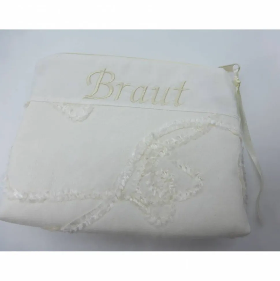 Oberes Teil aus Batist, bestickt mit champagnerfarbenem Schriftzug ‚Braut‘.