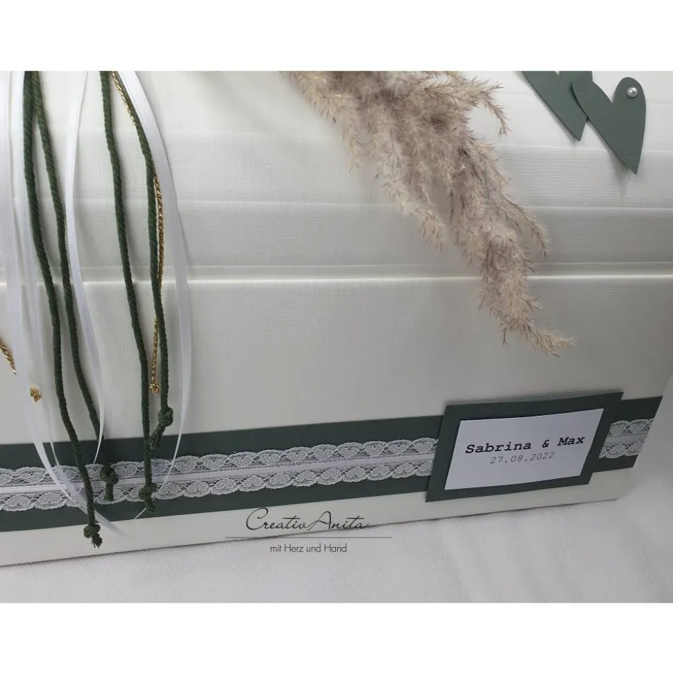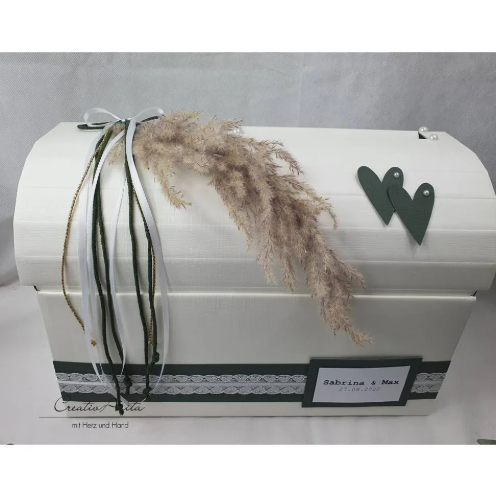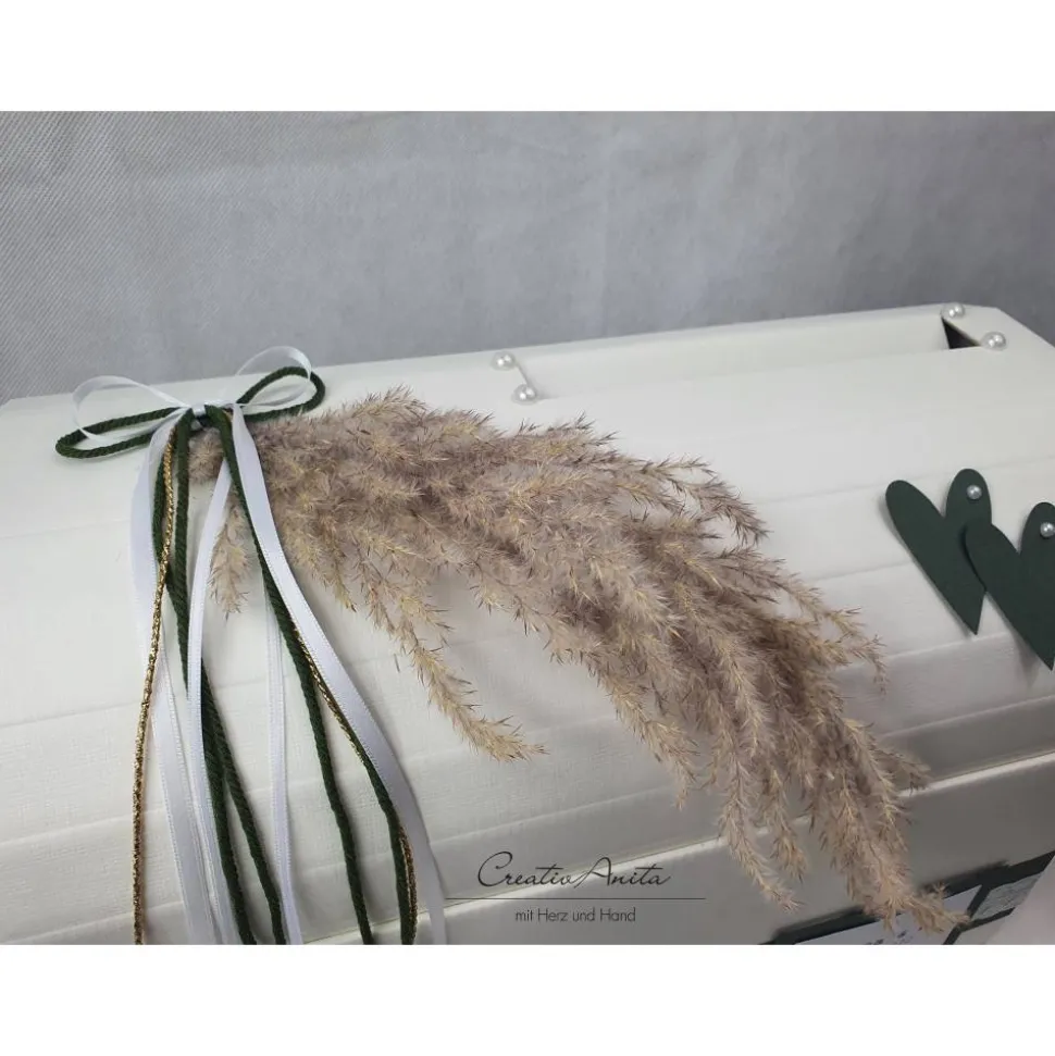 Briefbox – Geschenktruhe – Erinnerungsbox TRUHE – mit Pampasgras zur Hochzeit