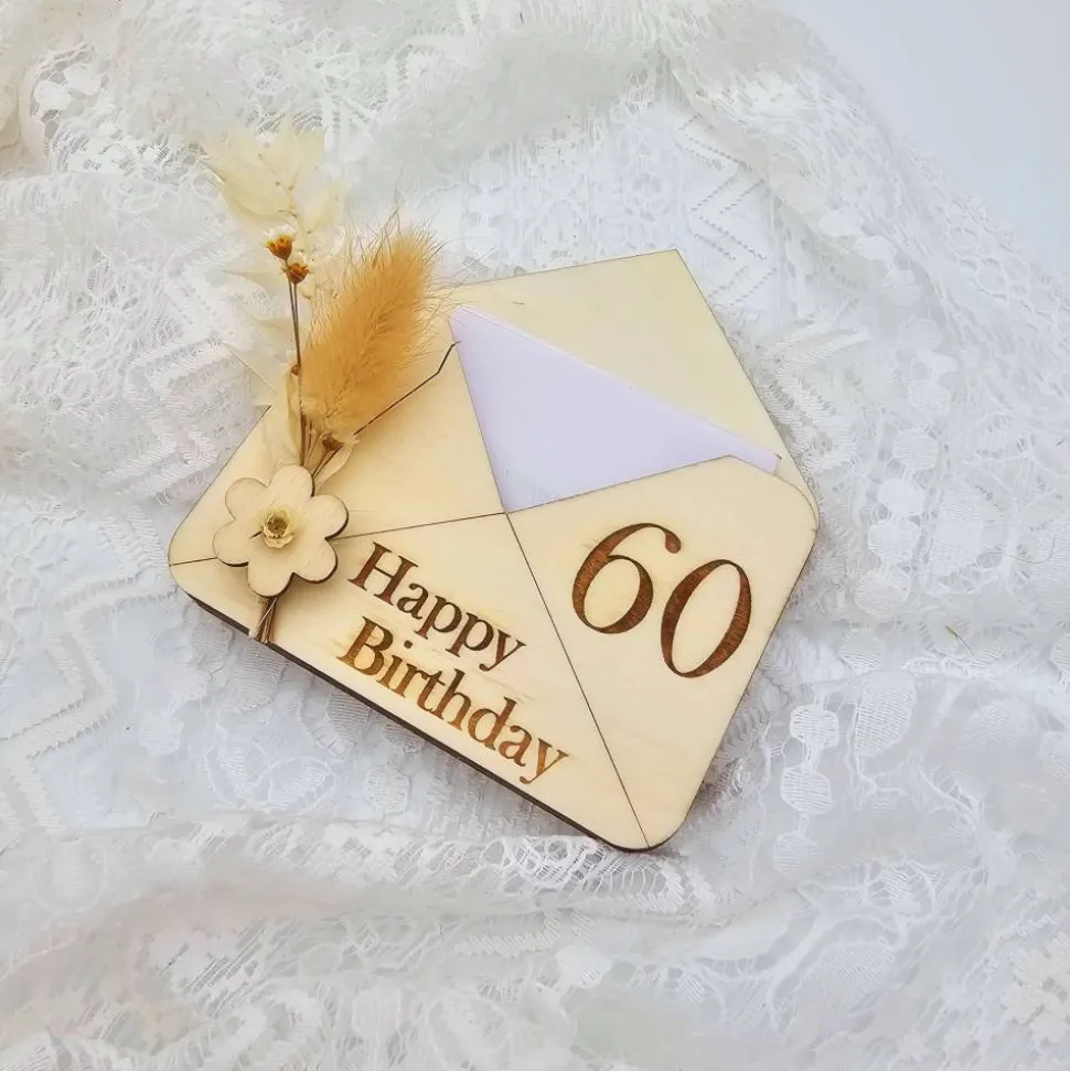 Entdecke unseren außergewöhnlichen Briefumschlag aus Holz, ideal als Geschenk zum Geburtstag. Mit diesem Holzumschlag verleihst du deinen Geburtstagswünschen eine ganz besondere Note. Perfekt für runde Geburtstage und als Wunscherfüller oder Gutschein Karte geeignet.