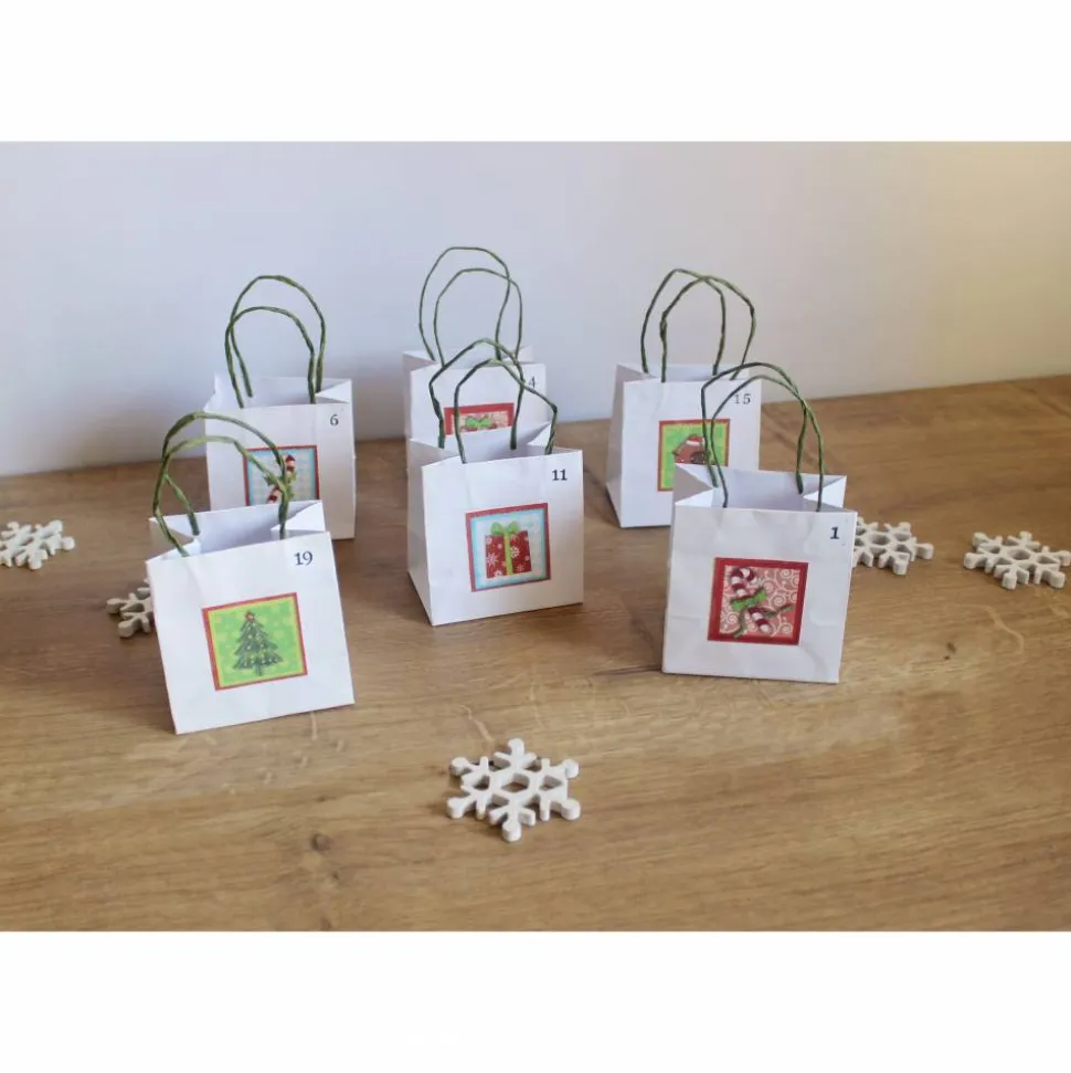 Die Papiertüten sind blickdicht und können entweder auf einem Tisch, in einer Holzkiste oder an einer Schnur präsentiert werden.