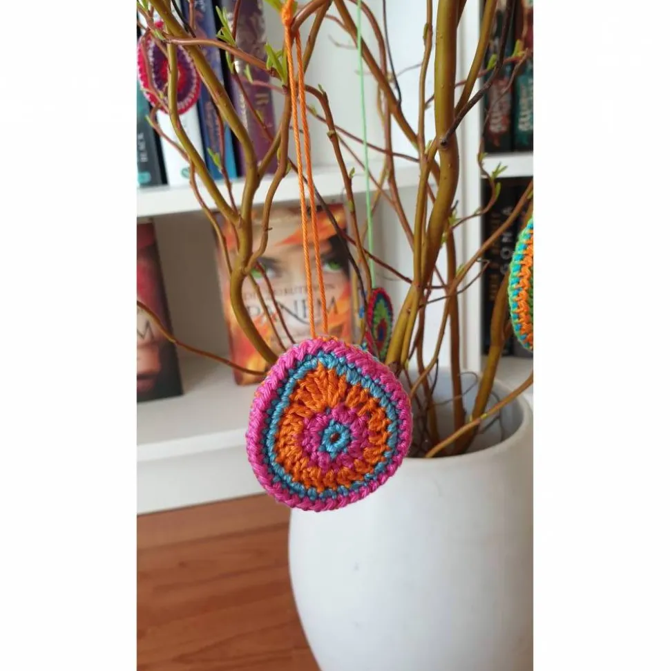 Das Osterei ist ein flaches Amigurumi und hat somit 2 Seiten (siehe Fotos).