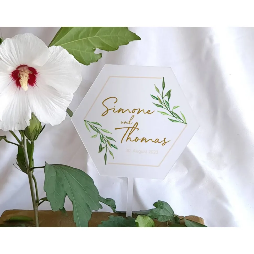 Zur Auswahl stehen das Hexagon oder der Kreis mit einem Durchmesser bzw. Breite von 13 cm und einem Stecker mit der Länge von 10,5 cm, Stärke 3 mm.