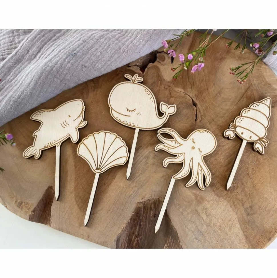 Auf der Suche nach besonderer Kuchendeko? Dann haben wir genau das Richtige für Dich, unsere Meerestiere passend für deine Geburtstagstorte. Die Cake Topper gibt es in zwei Größen für Kuchen oder Cupcakes / Muffins. Gerne personalisieren wir diese auch auf Wunsch.