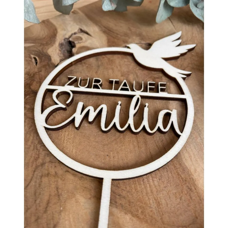 Caketopper zur Taufe mit Namen / Kuchendeko personalisiert mit Taube / Cake Topper Kommunion Konfirmation