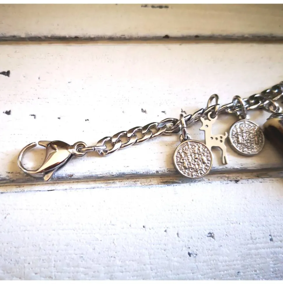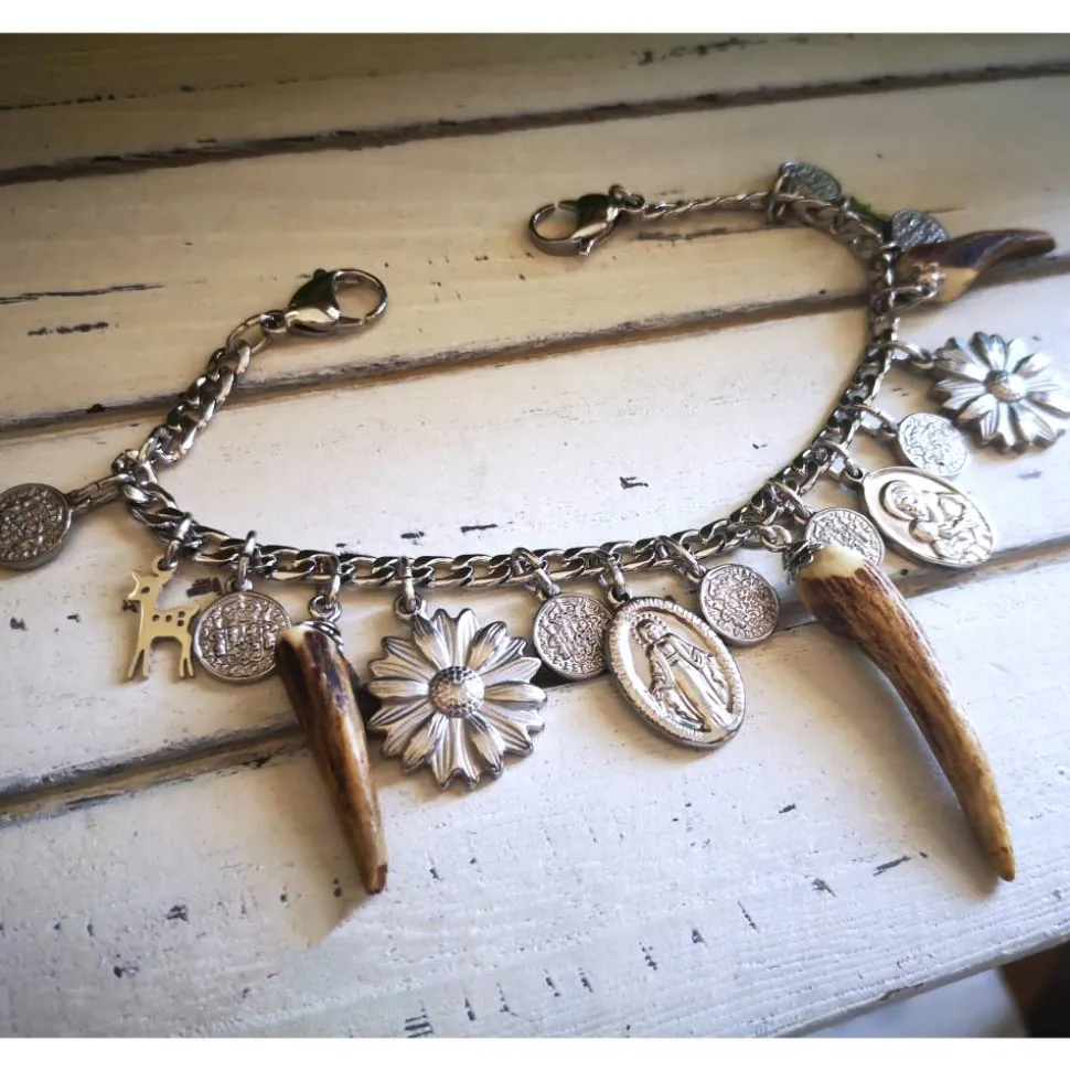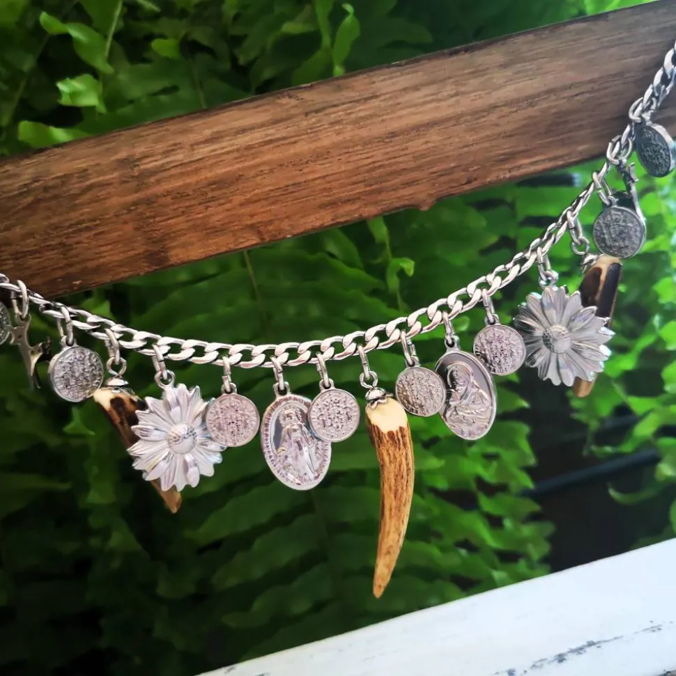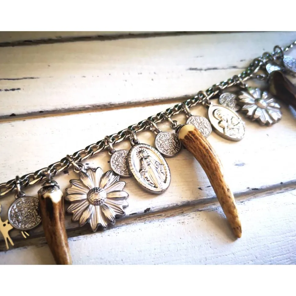 Dieses Charivari wurde aus einer massiven Kette, Anhängern und 3 kleinen Hornspitzen gefertigt.