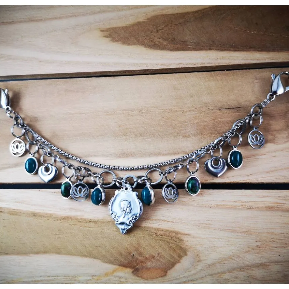 Ergänzt wird das edle Design durch verschiedene Jadesteine, Herzanhänger und Blumenanhänger, die das Gesamtbild perfekt abrunden.