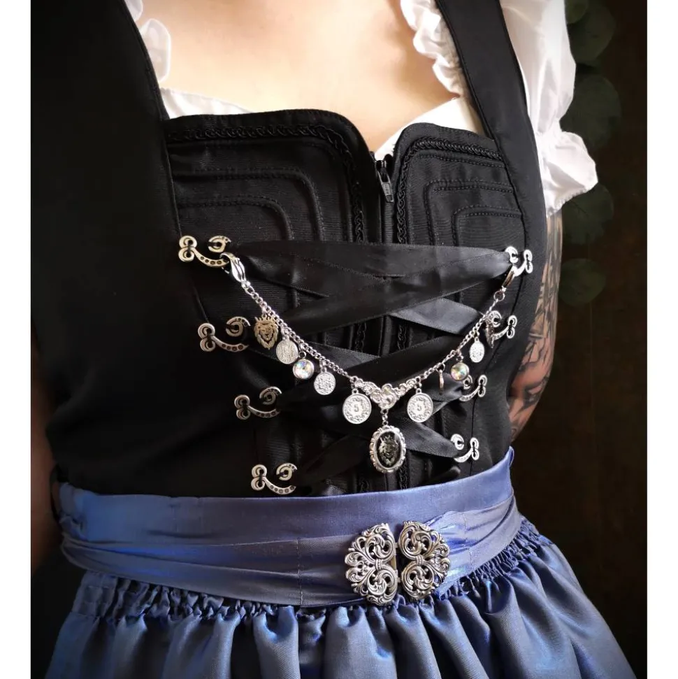 Mit einer Länge von ca. 22 cm kann das Charivari problemlos an Schürzen und Mieder angebracht werden, dank des großen, stabilen Karabiners.