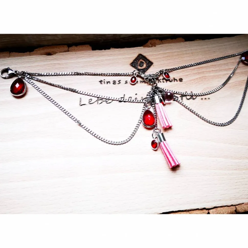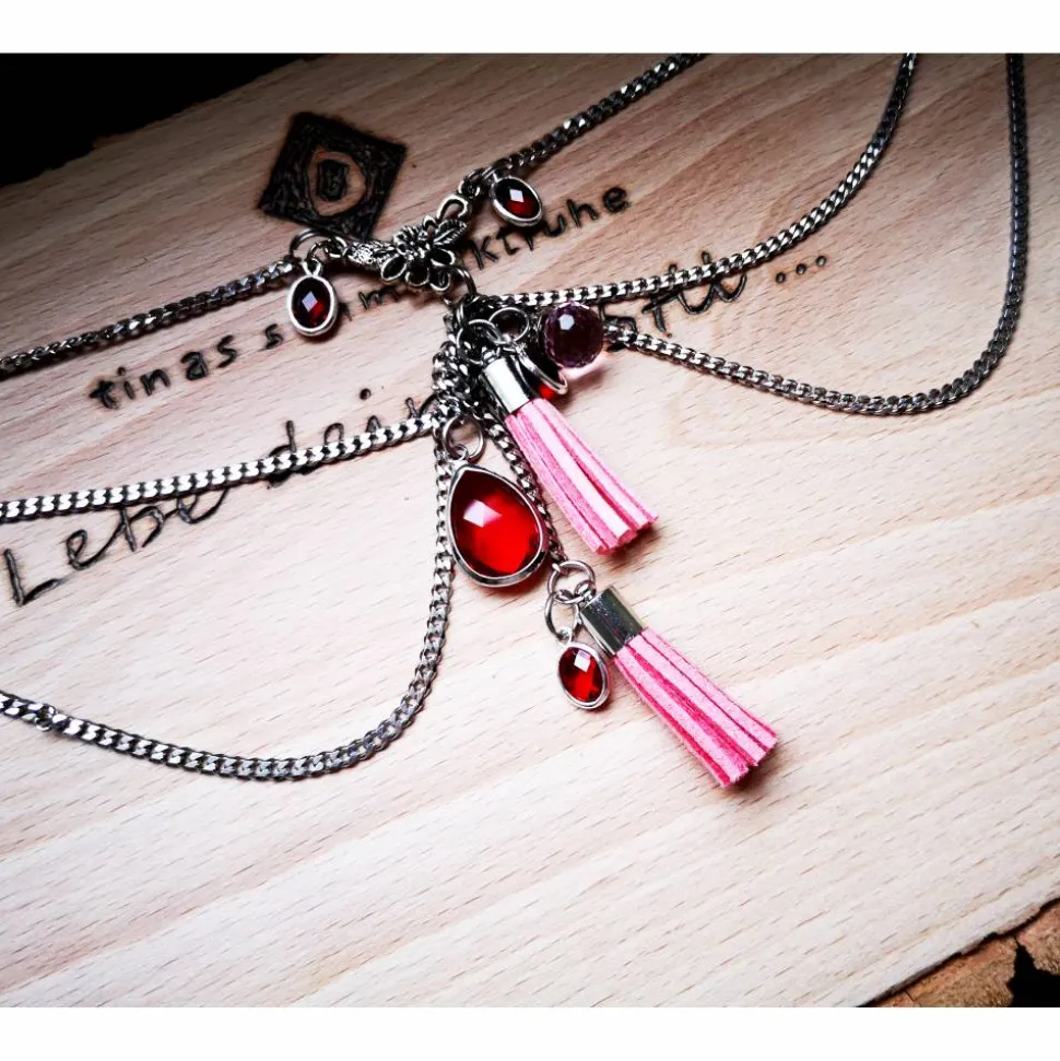 Dieses dreireihige Charivari hat eine Länge (kürzeste Kette) von ca. 29 cm
