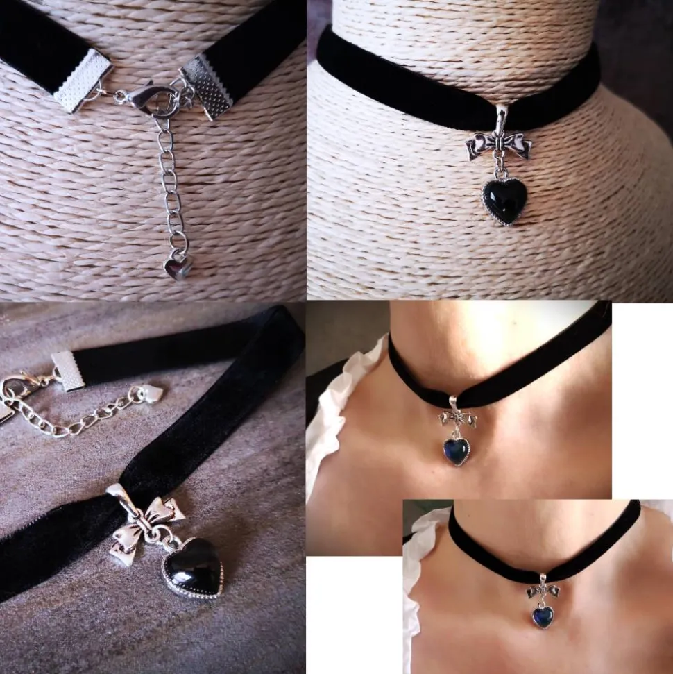 Die Kette besteht aus einem Samtband mit Verlängerungskettchen und hat eine optimale Länge von ca. 45 cm.