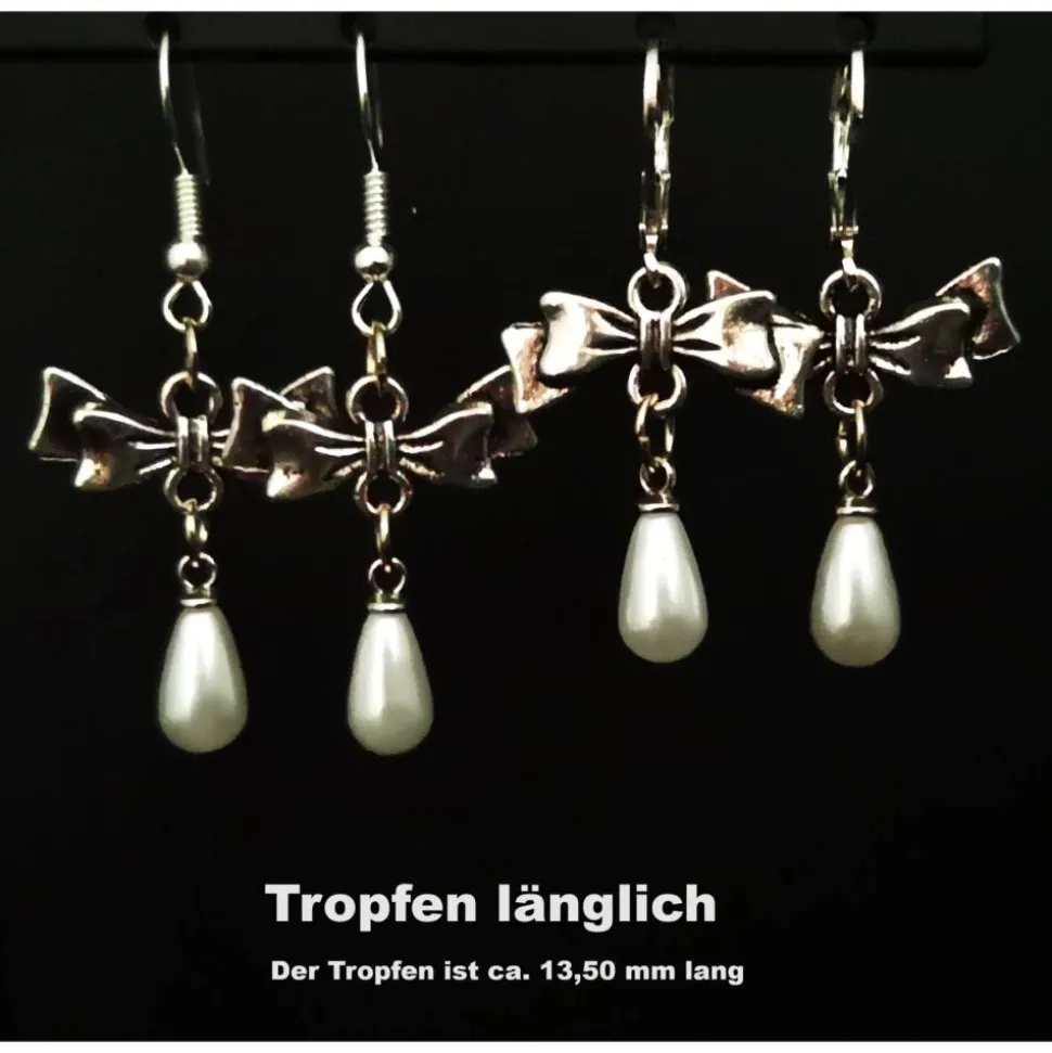 Die Ohrringe sind wahlweise mit Brisuren oder Ohrhaken erhältlich, jeweils mit verschiedenen Perlen, die auch im Charivari verarbeitet sind.