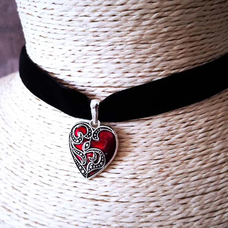 Die dunklen Glasherzanhänger in Kombination mit dem roten Schmuckherz sind ein absoluter Blickfang.