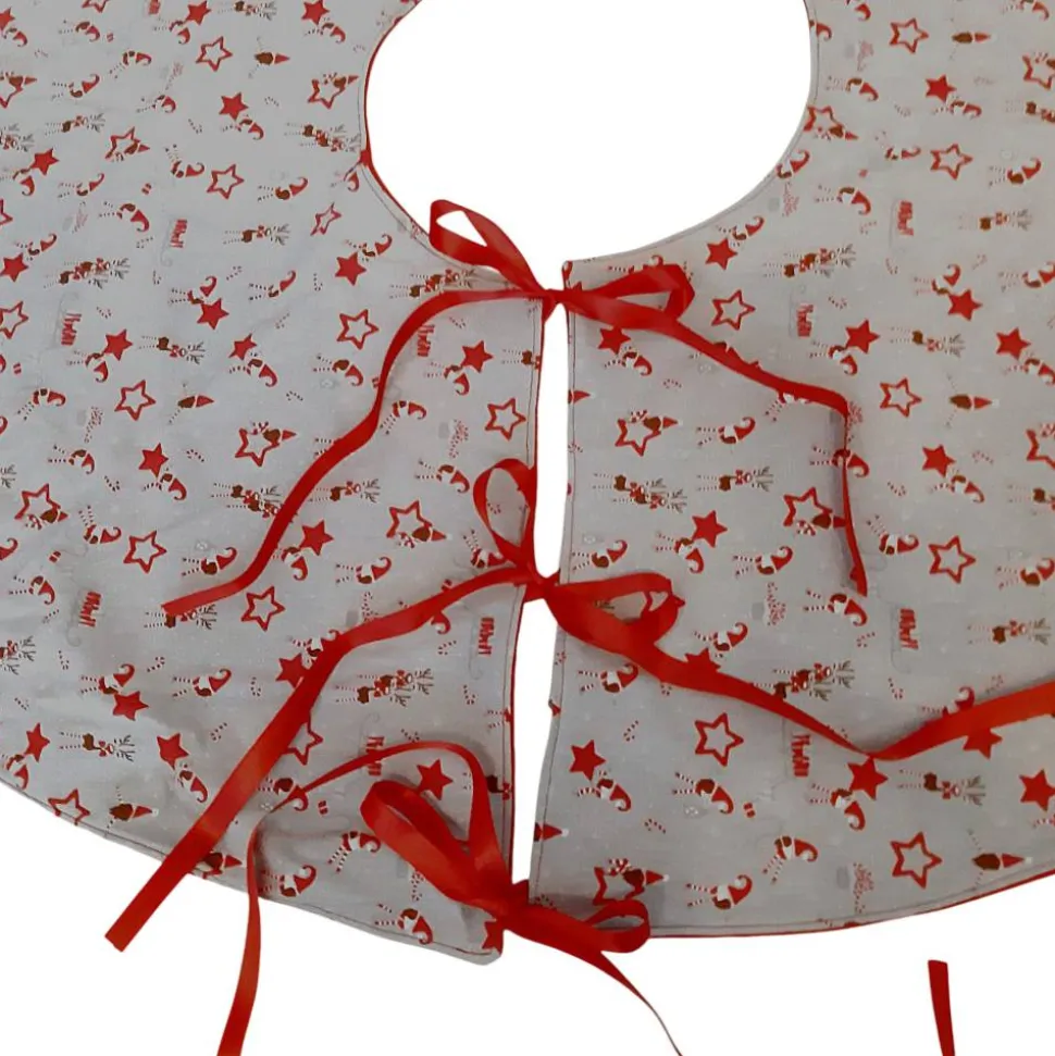 Diese schöne Baumdecke mit liebevollen Details, ziert den Weihnachtsbaum von unter. Gerade dort, wo man die Kabel der Lichterkette und den unschönen Baumständer sonst sehen würde. Gleichzeitig fängt sie Tannennadeln und Kerzenwachs auf. Doch die chice Baumdecke kann noch mehr, sie präsentiert die Weihnachtsgeschenke würdevoll. Doch aufgepasst, kleine Geschenke verstecken sich auch gerne unter ihr. Die Christbaumdecke ist an einer Stelle durch Satinbänder zu öffnen, damit man sie leicht um den Baum legen kann. Die untere Seite der Baumdecke besteht aus Fleece, wodurch sie etwas schwerer und weicher ist. Somit fällt die Baumdecke schön und macht zu gleich eine kuschlig-warme Ambiente.