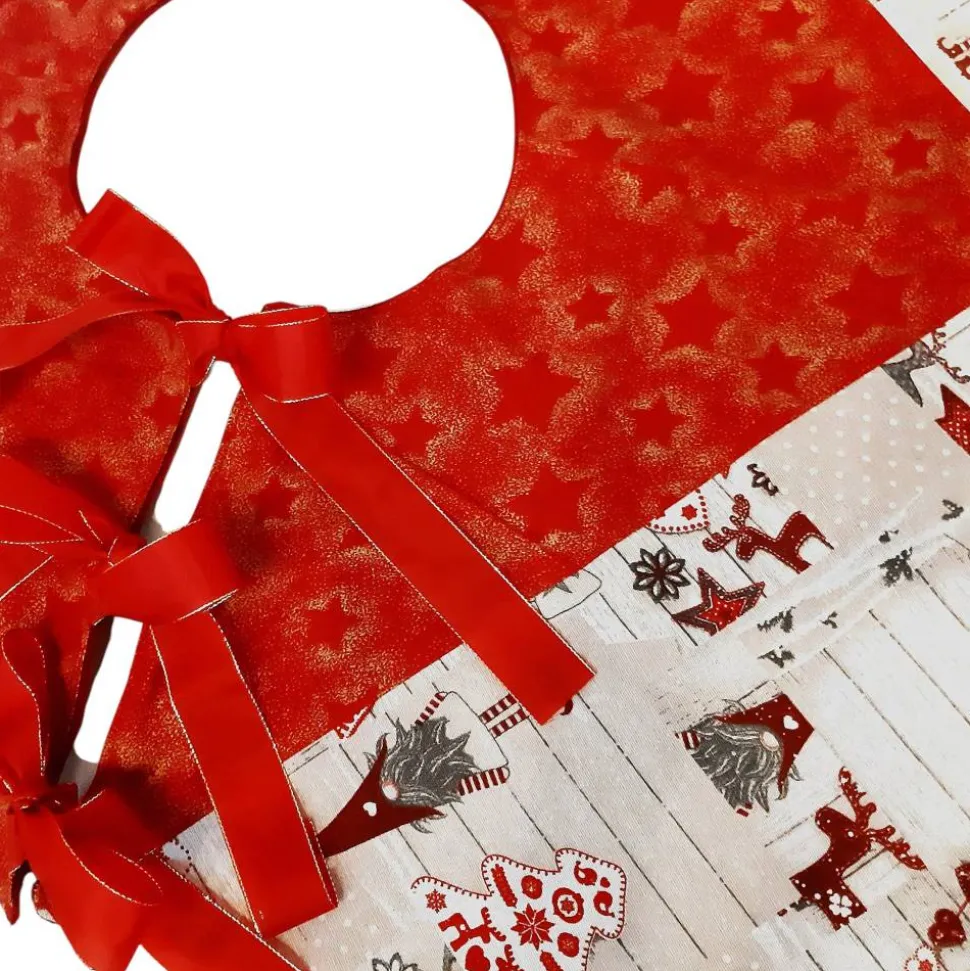 Diese schöne Baumdecke mit liebevollen Details, ziert den Weihnachtsbaum von unter. Gerade dort, wo man die Kabel der Lichterkette und den unschönen Baumständer sonst sehen würde. Gleichzeitig fängt sie Tannennadeln und Kerzenwachs auf. Doch die chice Baumdecke kann noch mehr, sie präsentiert die Weihnachtsgeschenke würdevoll. Doch aufgepasst, kleine Geschenke verstecken sich auch gerne unter ihr.