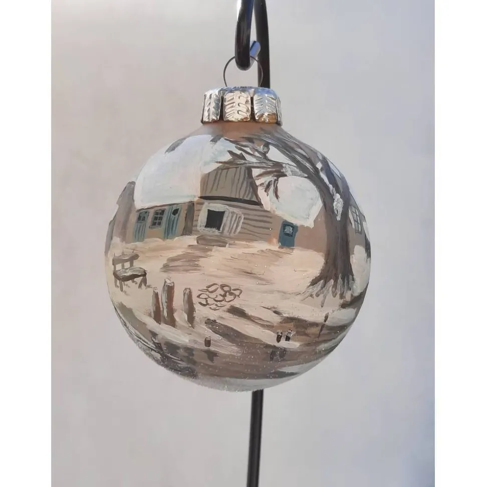 Christbaumkugel/ Weihnachtskugel aus Glas 6cm mit wunderschönem winterlichen Landschaftsmotiv