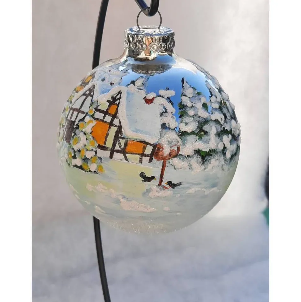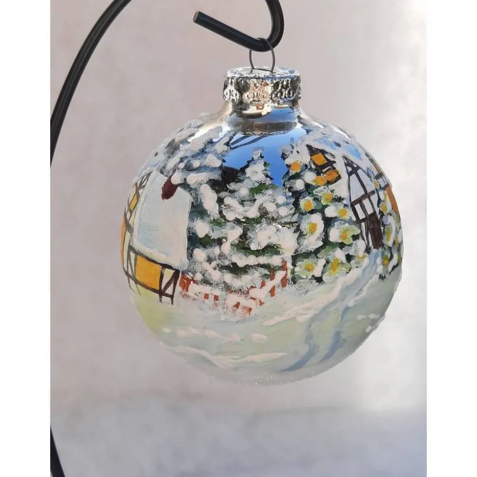 Christbaumkugel/ Weihnachtskugel aus Glas 8cm mit wunderschönem winterlichem Landschaftsmotiv