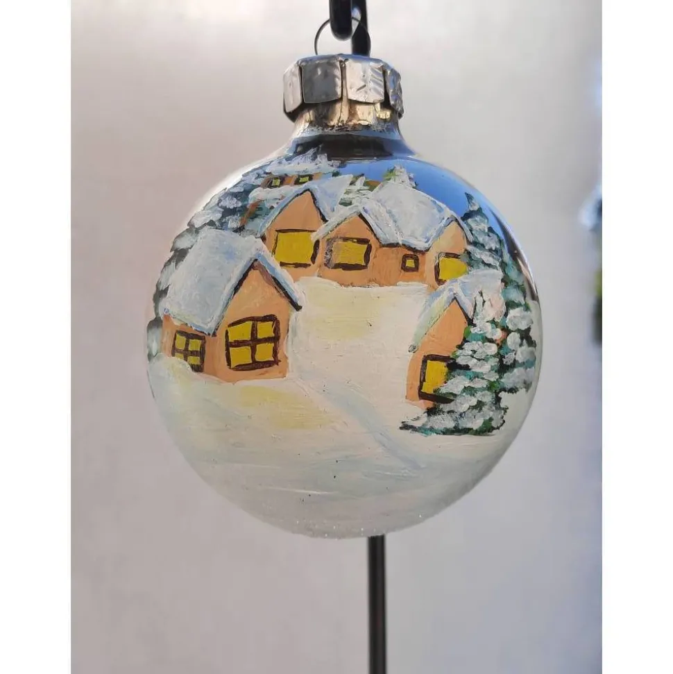 Christbaumkugel/ Weihnachtskugel aus Glas 8cm mit wunderschönem winterlichen Motiv