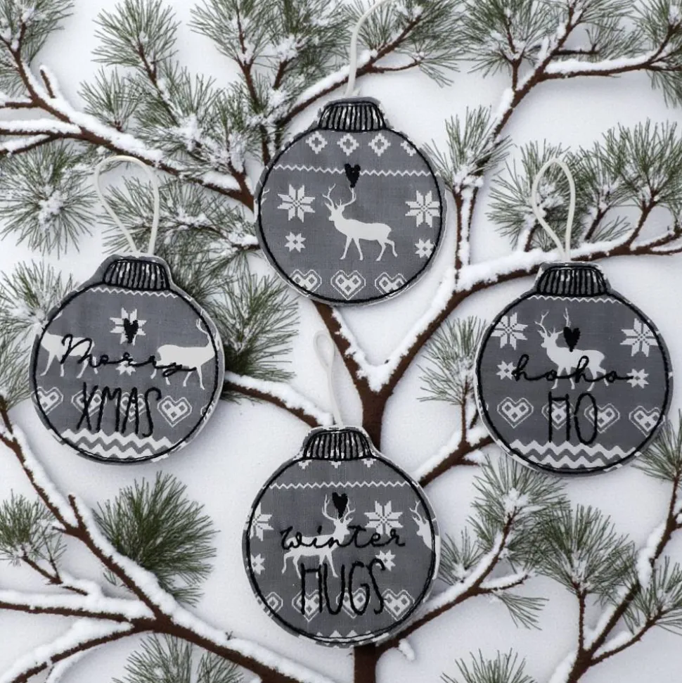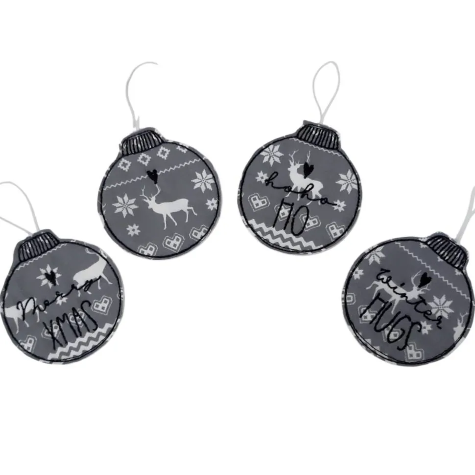 Christbaumkugeln aus Stoff im 4er Set, Geschenkanhänger bestickt