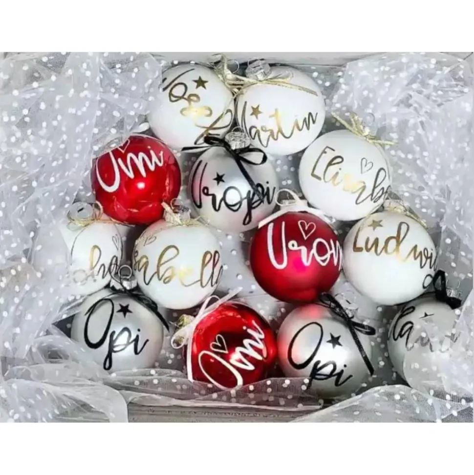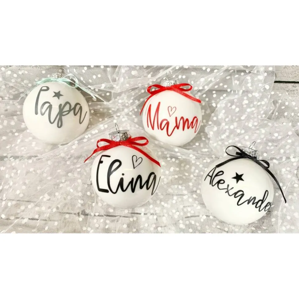 & Christbaumkugeln / Weihnachtskugeln 8 cm personalisiert – mit Stern, Herz oder Pfotenherz über dem Namen &