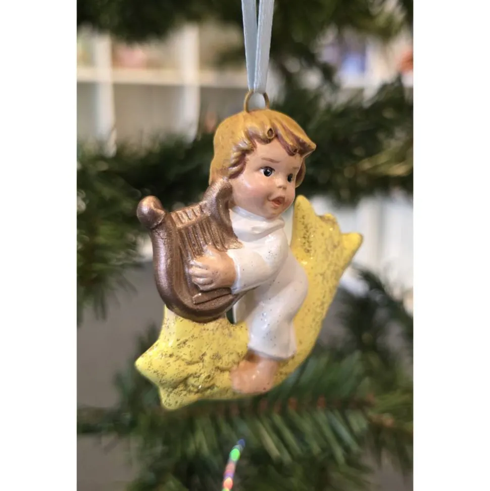 Engel mit Piccoloflöte auf Mond – ca. 8,0×6,5 cm