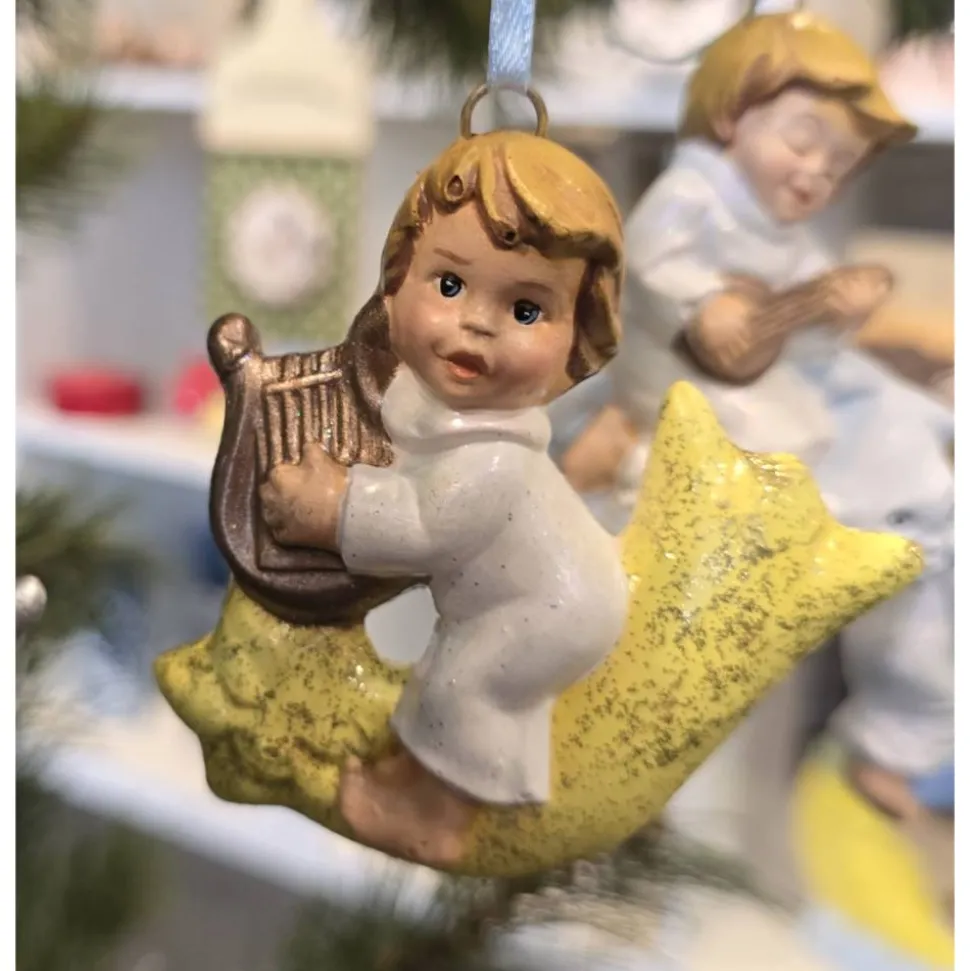 Engel mit Lyra/Harfe auf dem Weihnachtsstern – ca. 7,5×8,0 cm