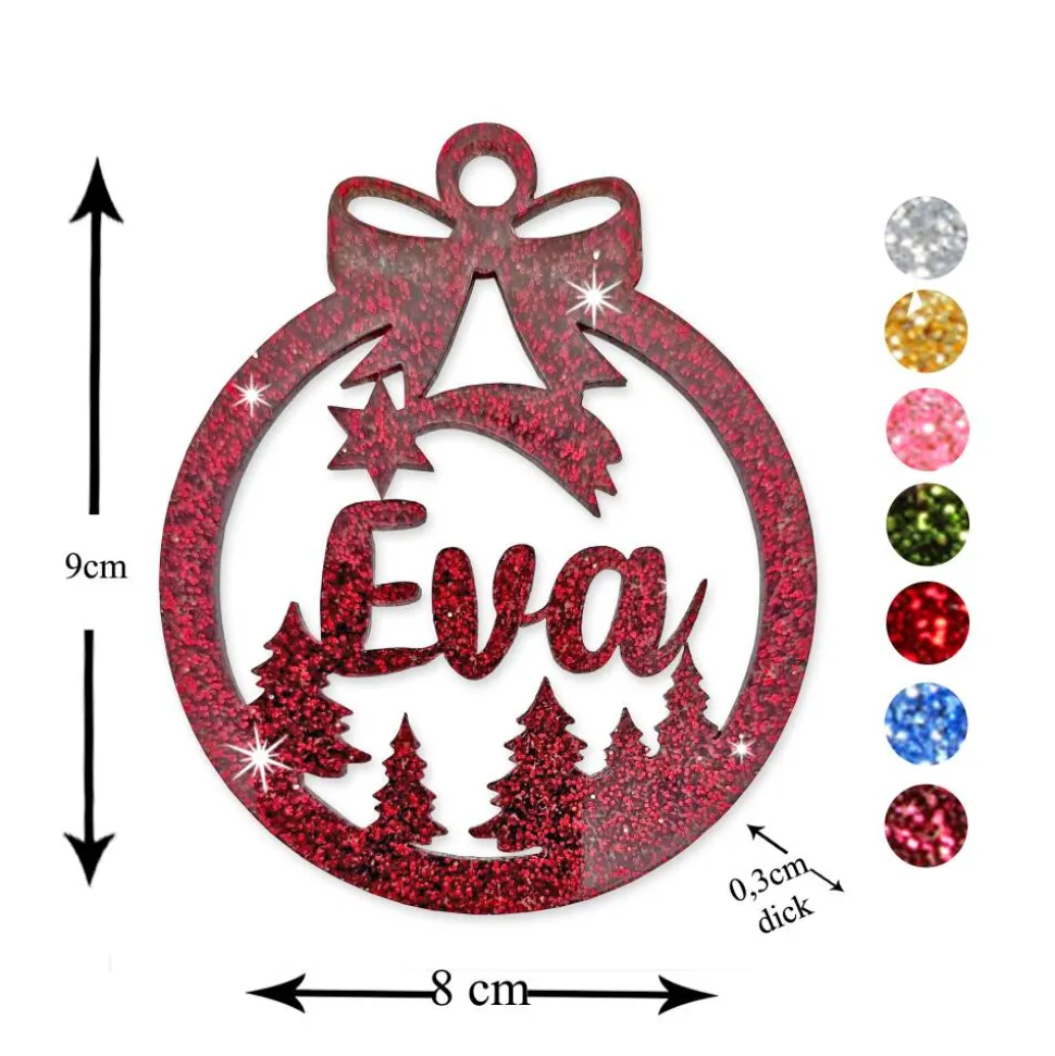 Christbaumschmuck Personalisierbar – glitzer Weihnachtsschmuck mit Namen – Acrylglas – Christbaumkugeln – Sternschnuppe
