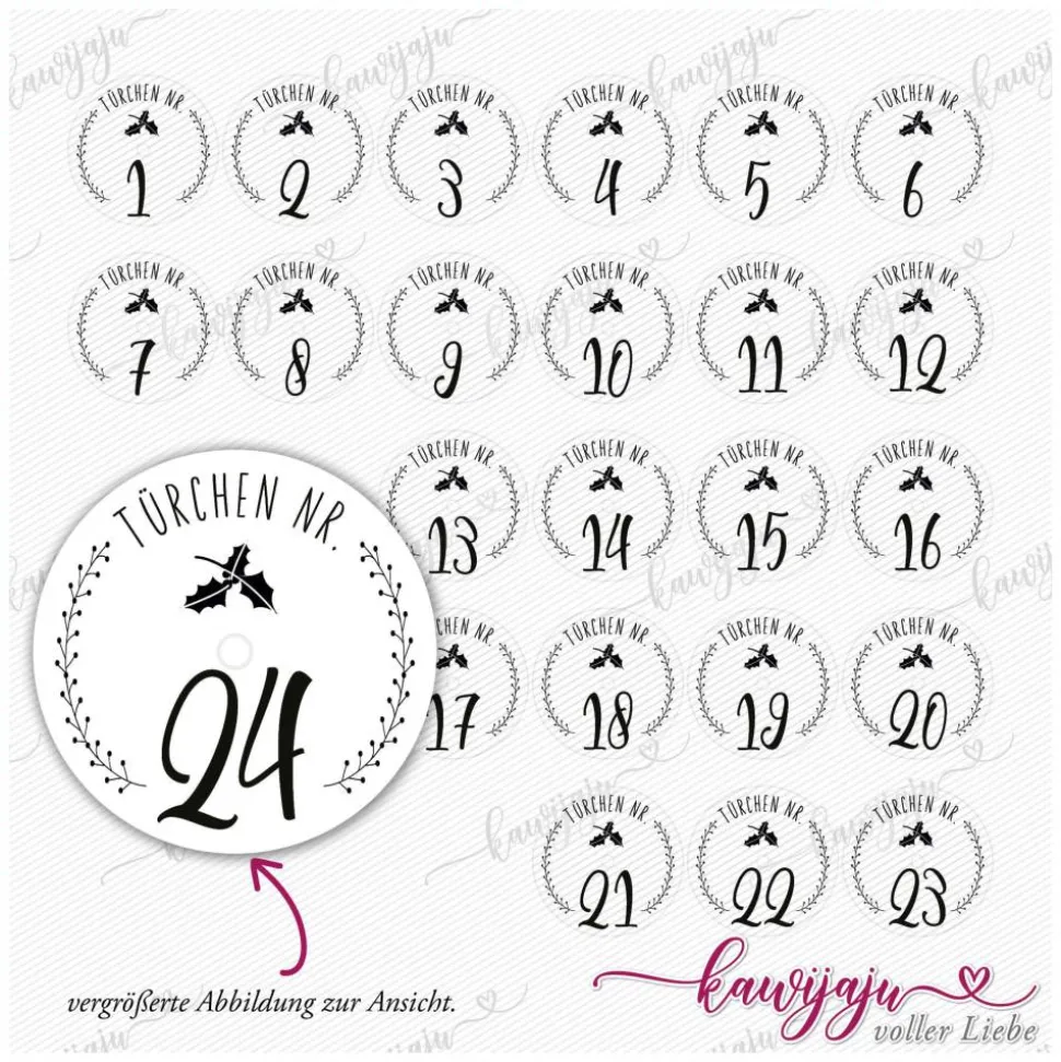 – Adventszahlen von 1-24 für eine vollständige Gestaltung deines Adventskalenders (DIN A4).