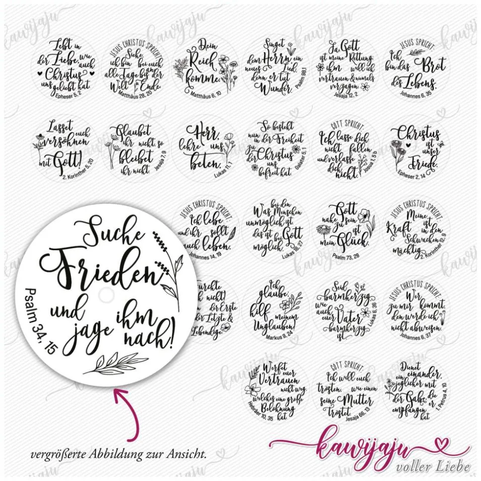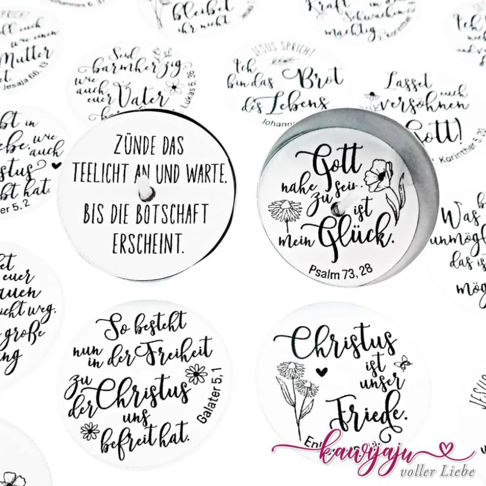 Unsere Jahreslosungen für den Advent Teelicht-Botschaften, sind Teelicht Vorlagen als digitale Datei zum Selbstausdrucken für Teelichter mit einem Durchmesser von 3,7 cm.