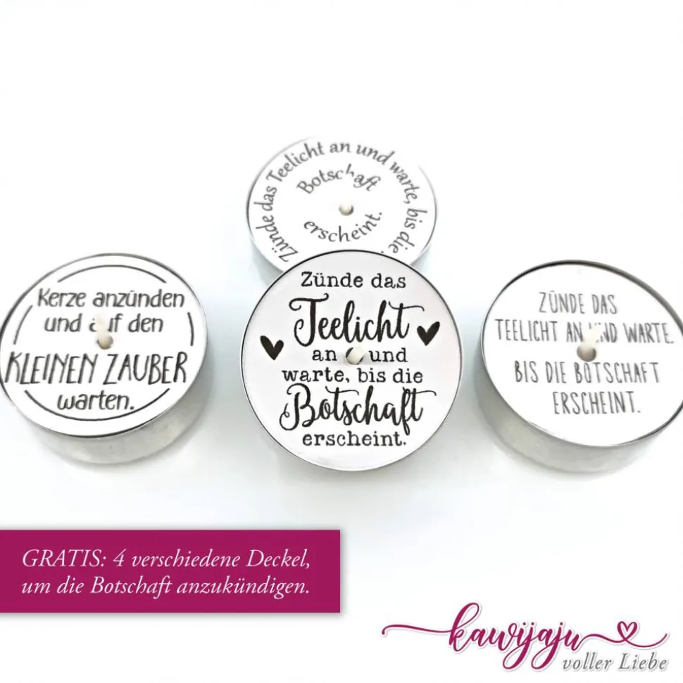 Unsere Teelichtbotschaften sind digitale Dateien, die du ganz bequem sofort herunterladen und anschließend mit einem Plotter oder einfach per Hand ausschneiden kannst.