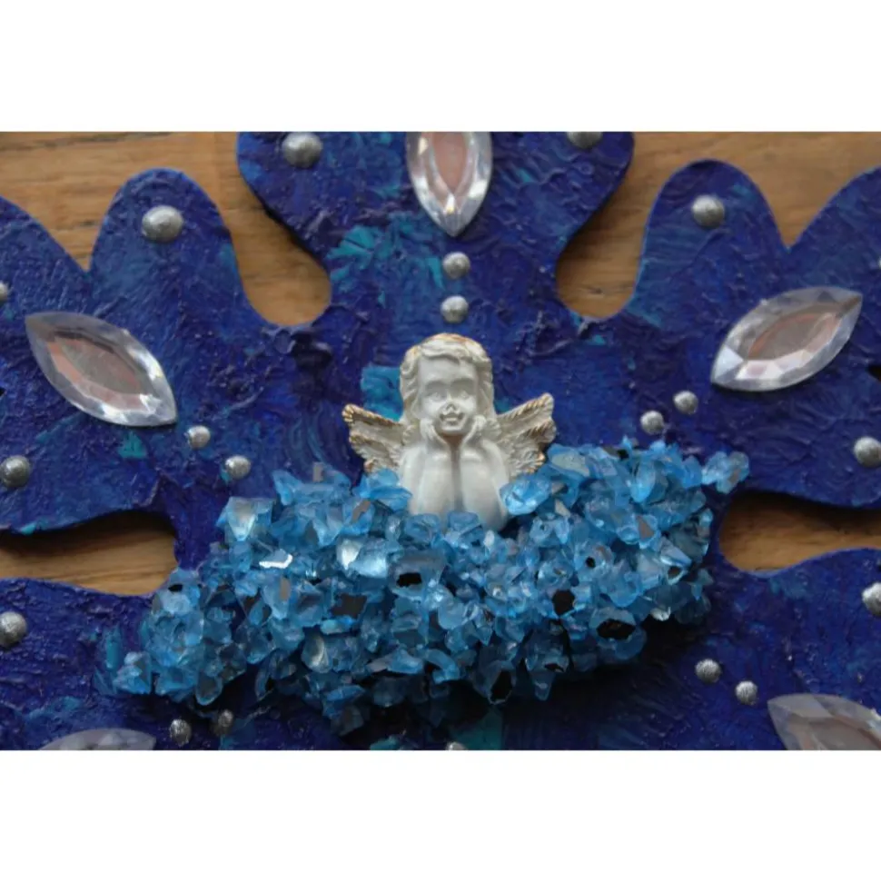 Bemalt mit Acrylfarben, dekoriert mit einem Engelchen und Glitzersteinen.