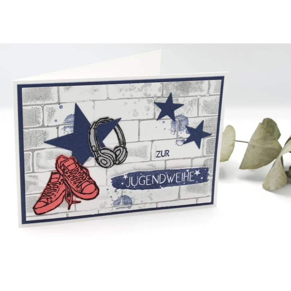 Den Schriftzug „Zur Jugendweihe“ habe ich gestempelt und mit Abstandspads auf der Karte befestigt.