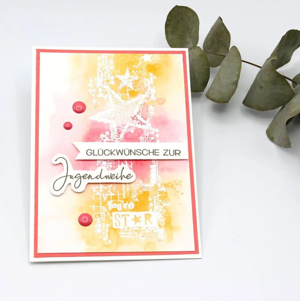Sterne, die über die Karte verteilt sind, symbolisieren den Beginn eines neuen Lebensabschnitts und den Glanz der Jugendweihe.