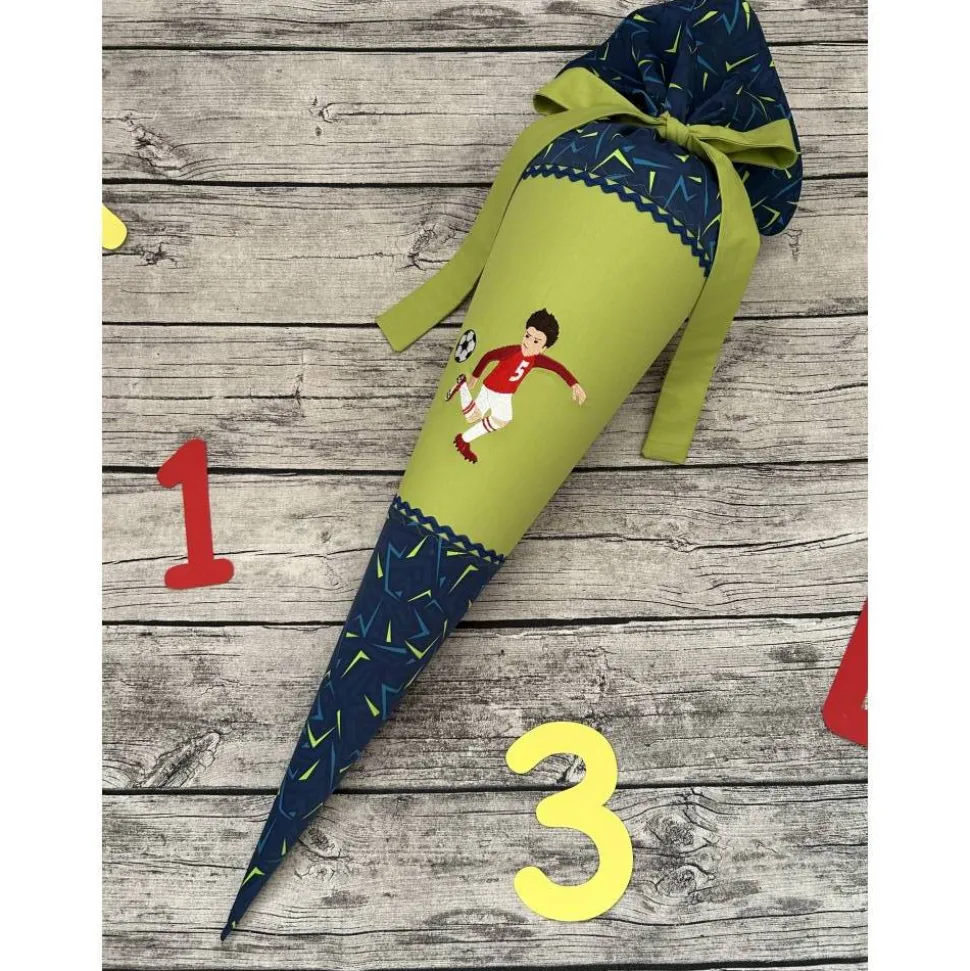 Die Schultüte ist 70cm groß, Plus der Stoff zum verschließen und genäht aus 98% Baumwolle 2%Elastan.