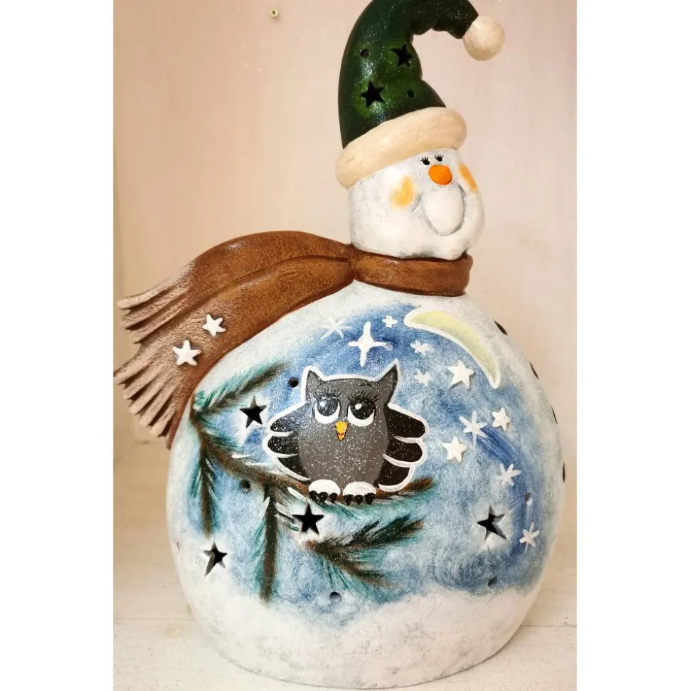 Der Schneemann ist ca 32cmx 23cm, aus Keramik, mit Liebe zum Detail handgemalt und wetterfest versiegelt. Er kann draussen stehen, sollte aber vor Frost geschützt werden. Die Figur ist ausgeschnitten und kann beleuchtet werden, ich empfehle LED Kerze oder Lichterkette zu verwenden.