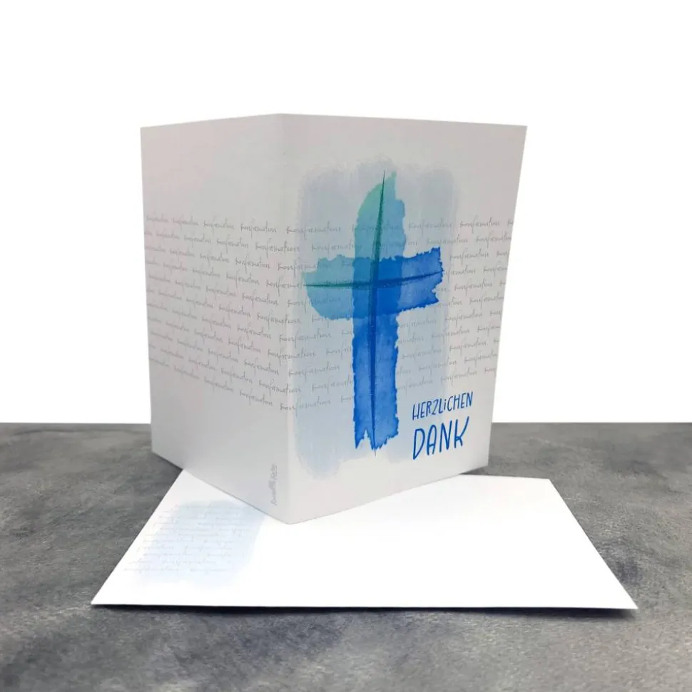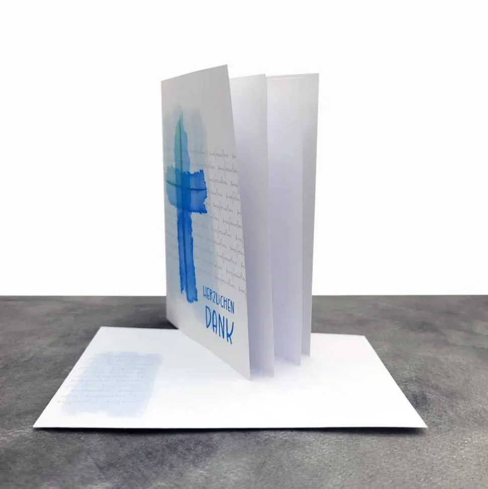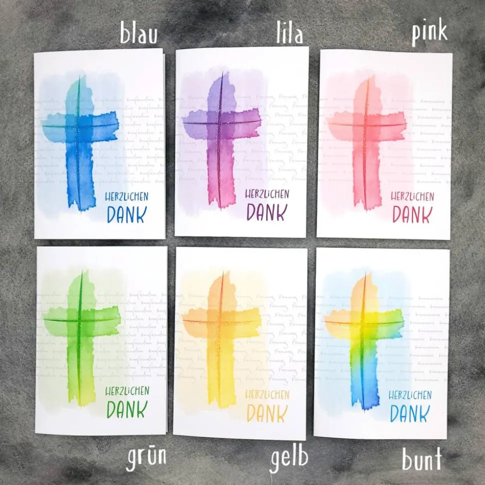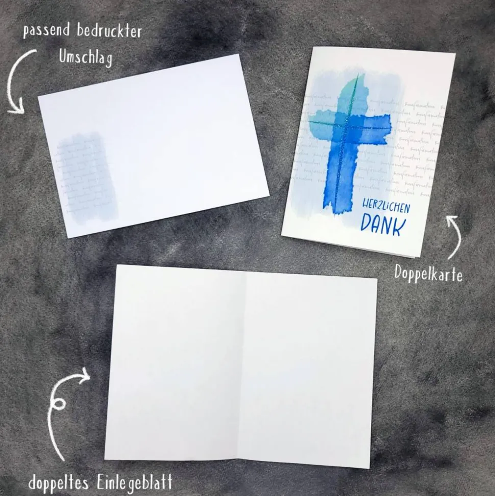 Entdecke die einzigartige Danksagungskarte für Kommunion, Konfirmation oder Firmung im edlen Design „Aquarell-Kreuz“!