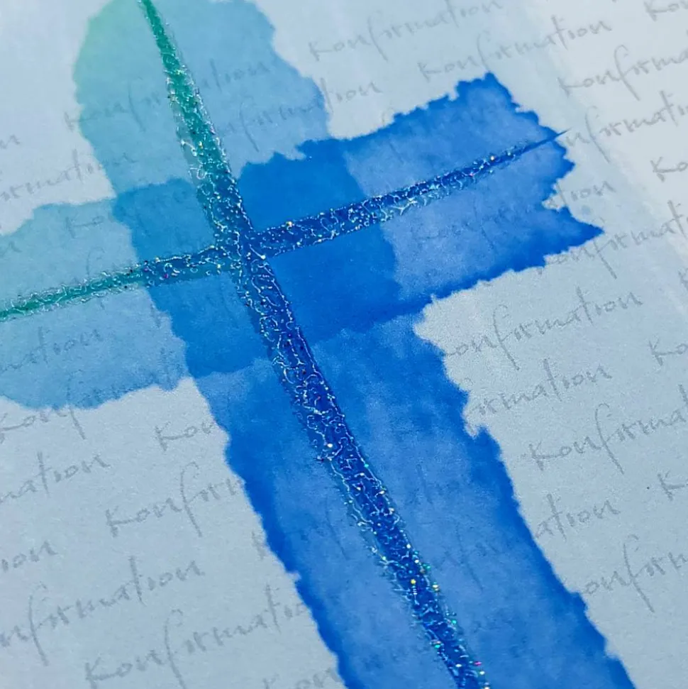 Diese Doppelkarte wird individuell für dich handgefertigt und besticht durch ein dezent beglitzertes Kreuz im Heißembossing-Verfahren. Du kannst die Kreuzfarbe frei wählen (siehe Foto) und den Anlass individuell anpassen.
