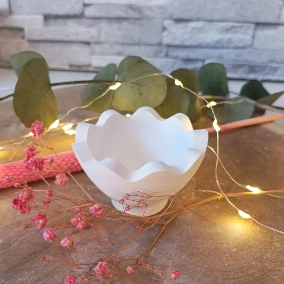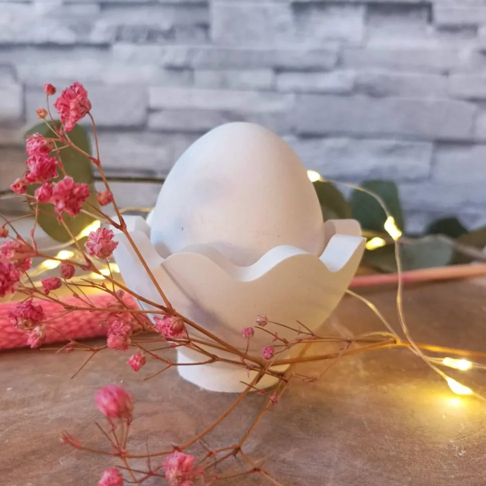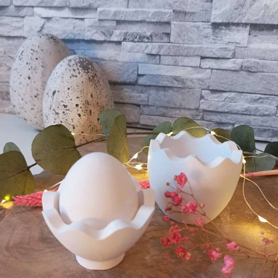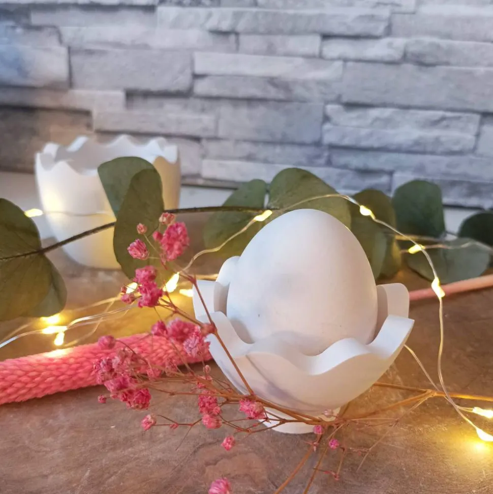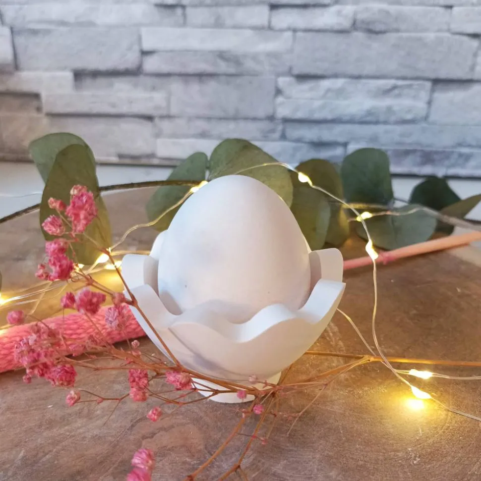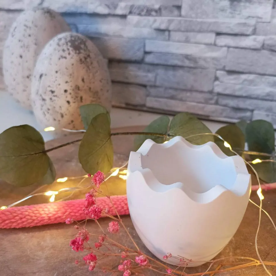 Raysin oder Keraflott, das feine, weiße Gießpulver auf Gipsbasis, verleiht meinen Eierschalen ihre unverkennbare Textur und Eleganz. Diese kleinen Kunstwerke werden von Hand gefertigt, wodurch jedes Stück ein Unikat ist. Die leichten Unregelmäßigkeiten und Lufteinschlüsse sind charakteristisch für Raysin-Dekorationen und verleihen ihnen einen Hauch von Individualität.