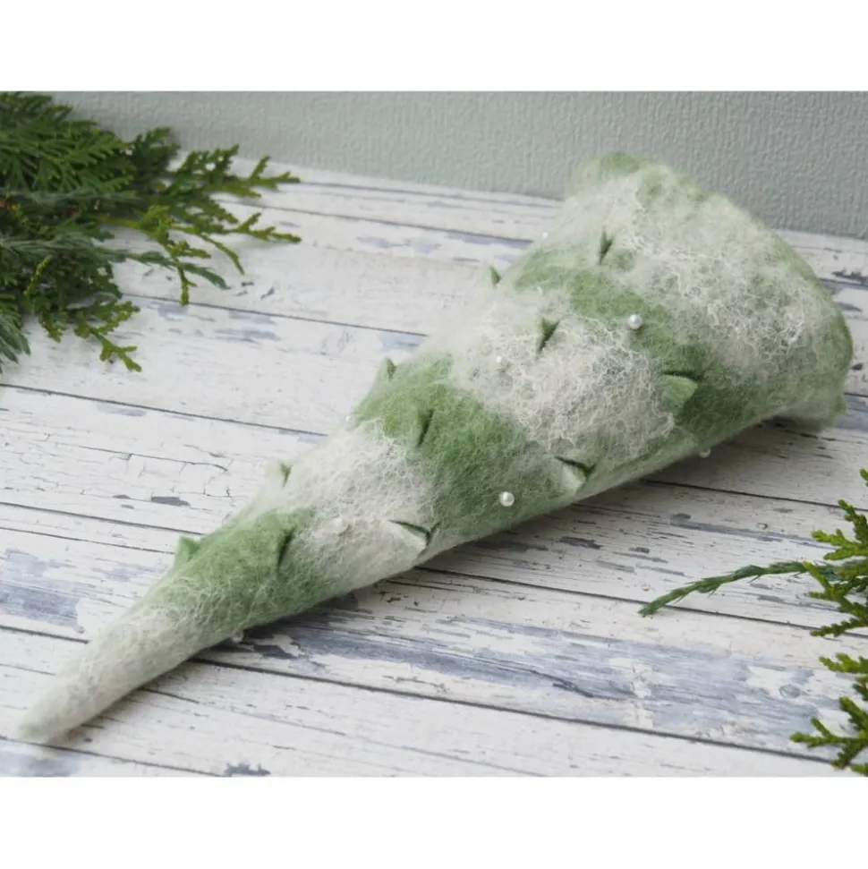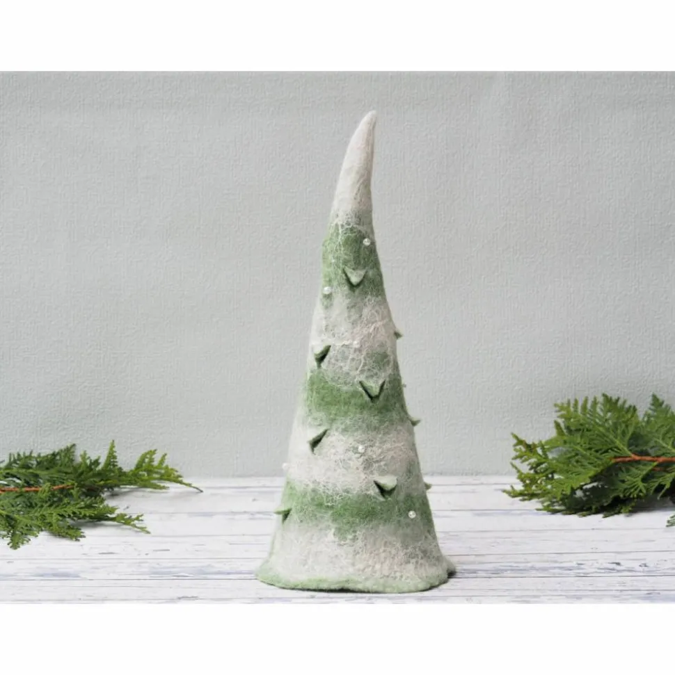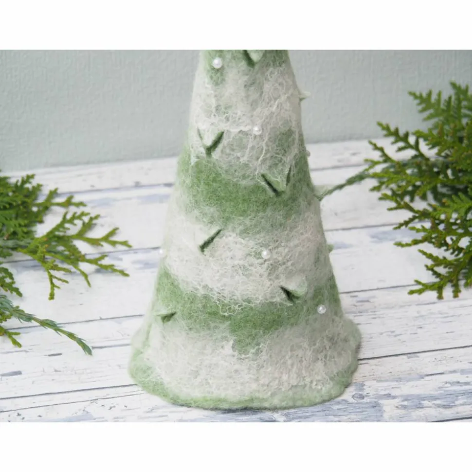 Der Baum ist handangefertigt in Nassfilztechnik aus 100% Wolle. Aus feinster grüner und weißer Merinowolle.