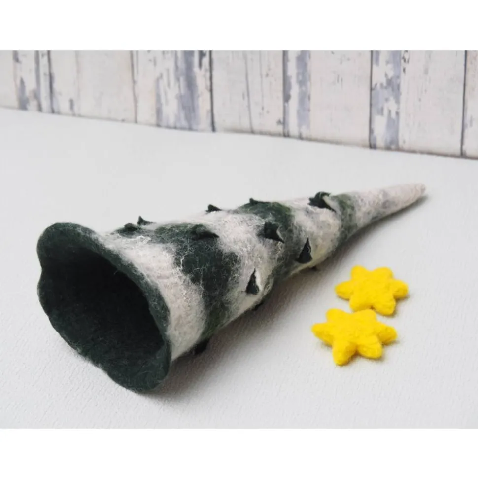 Der Baum ist gefertigt in Nassfilztechnik aus 100% Wolle.