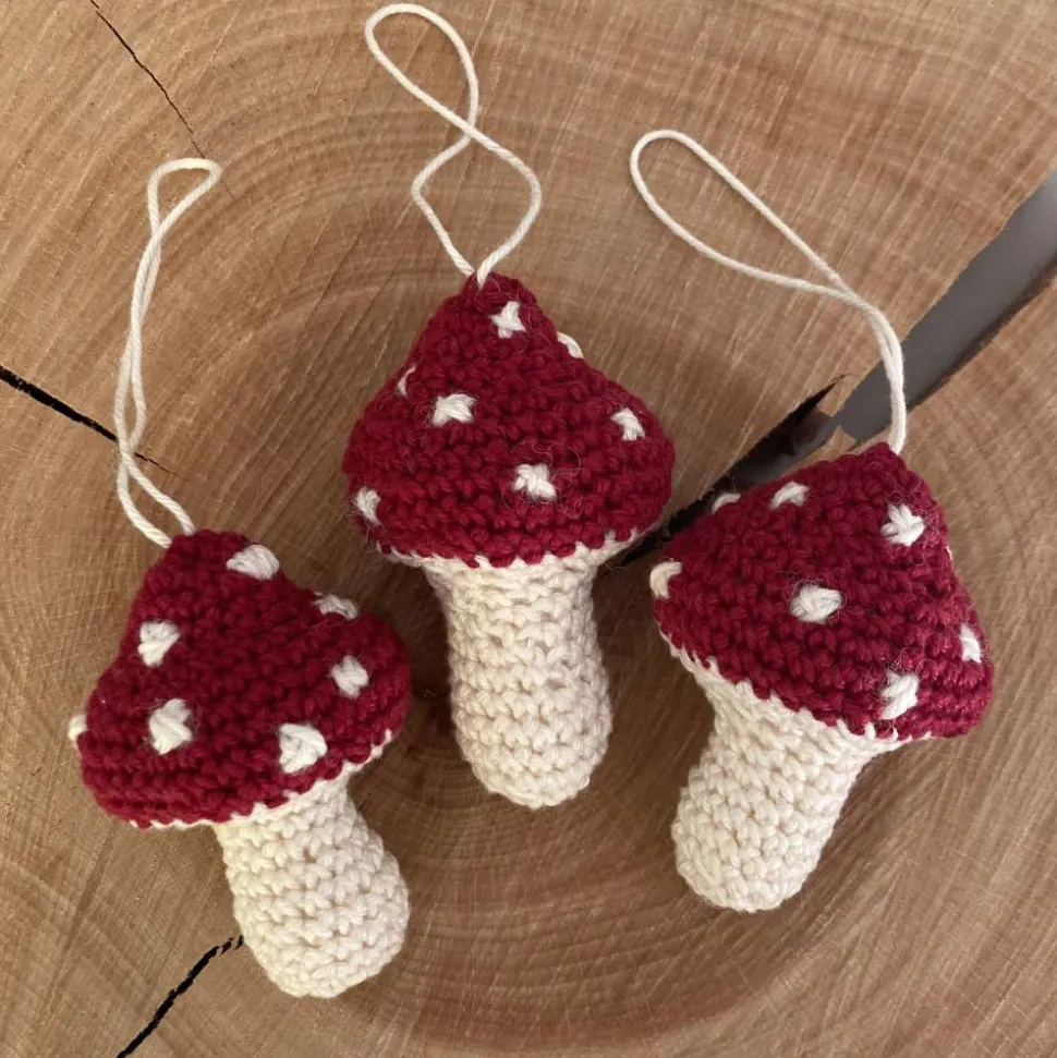 Jeder Pilz ist ein kleines gehäkeltes Unikat