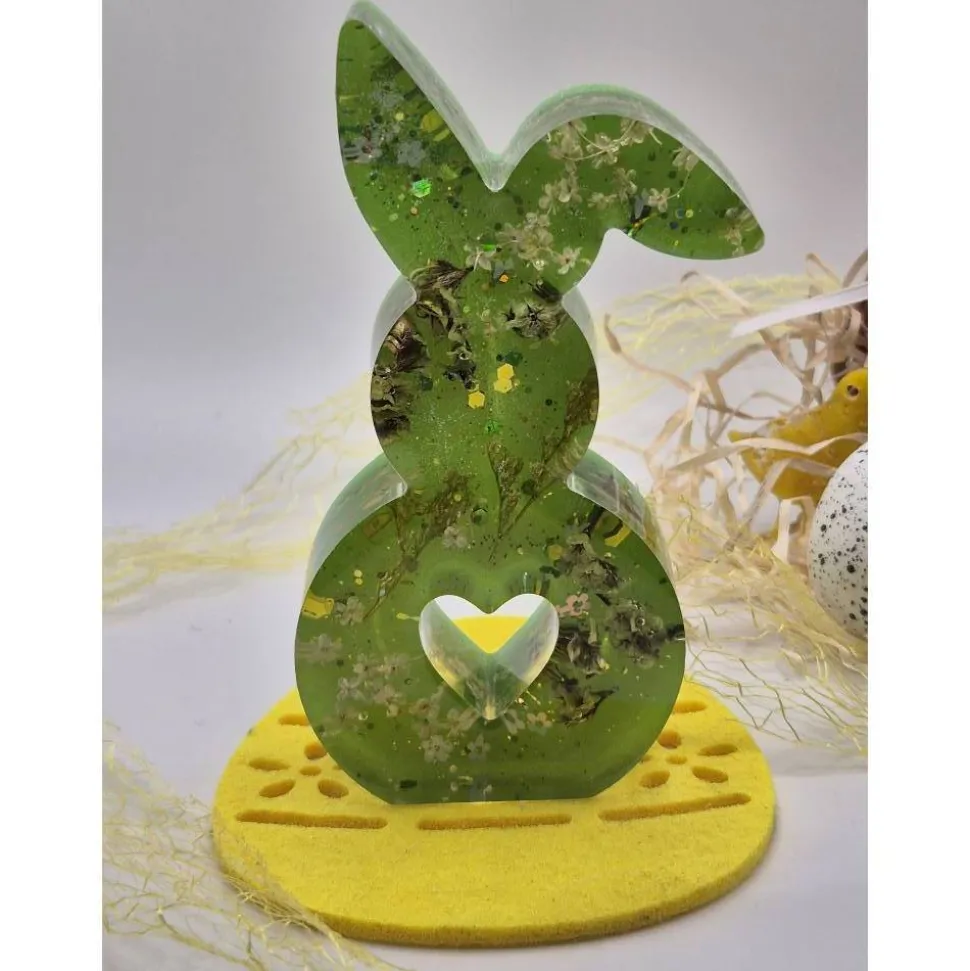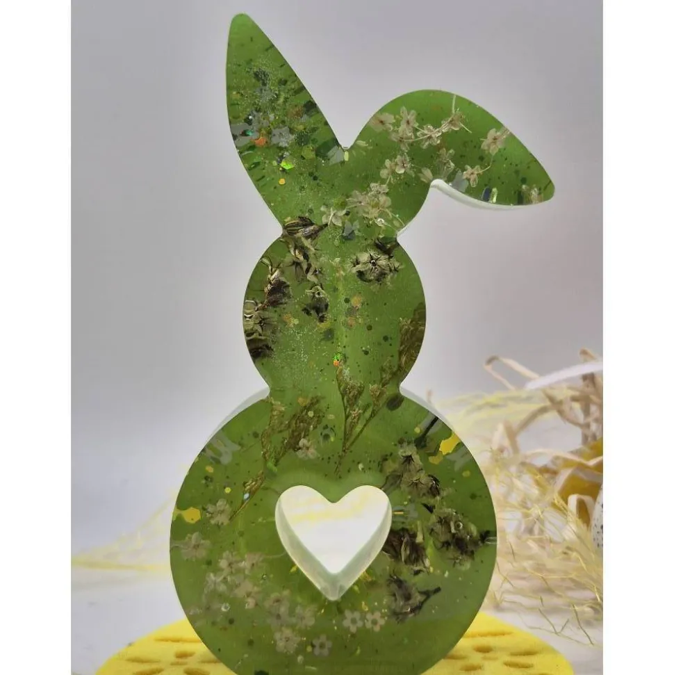 Handmade Osterhase aus Epoxidharz mit echten Blüten – ca. 12 cm