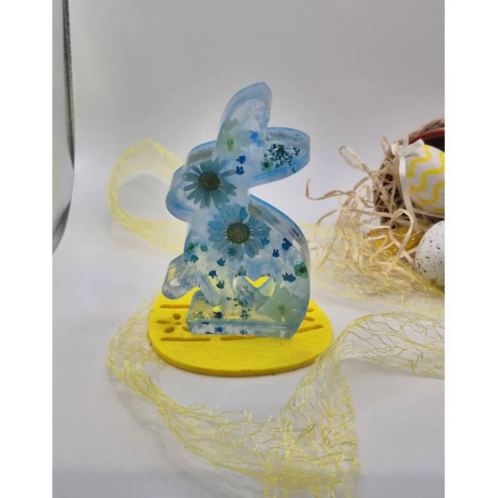 Handmade Osterhase aus Epoxidharz mit echten Blüten – ca. 12 cm