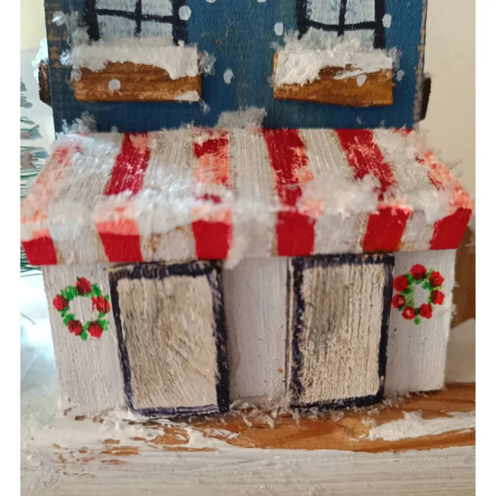 die Häuschen sind gesägt, geschliffen und mit Acrylfarben handbemalt,