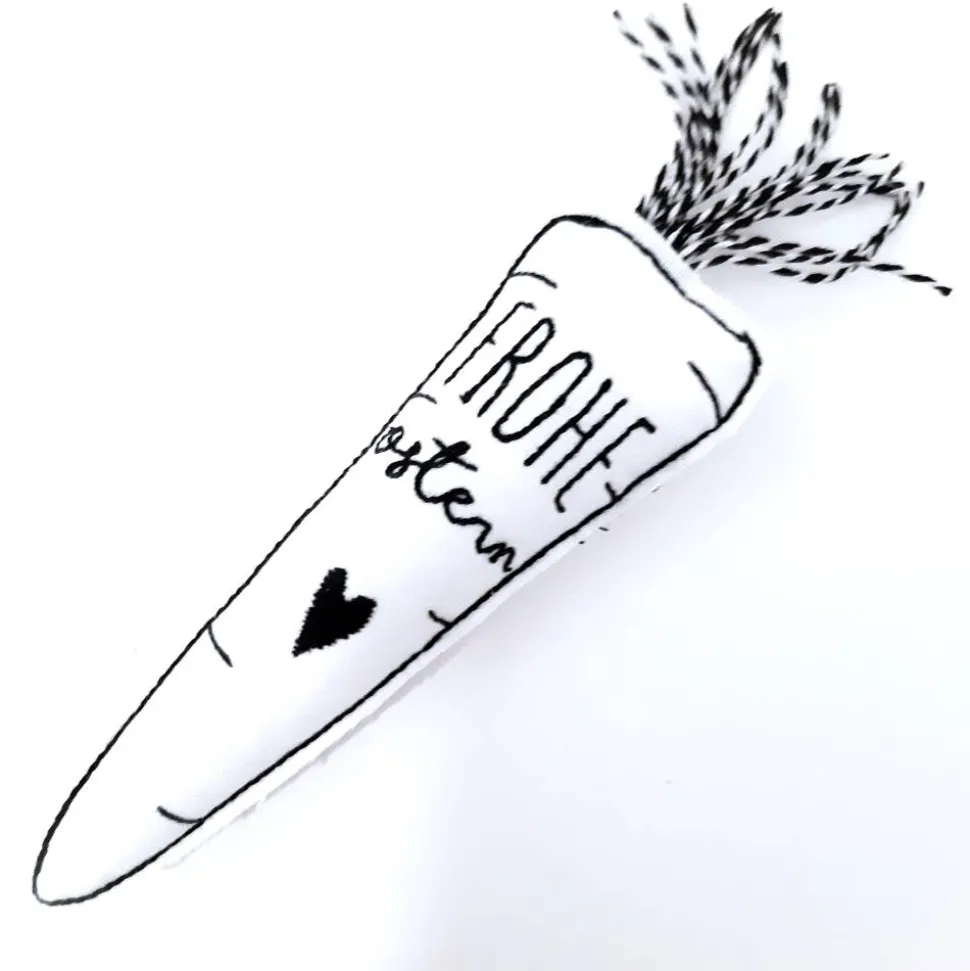 Süße Deko Möhre aus Baumwollstoff mit verschiedenen Texten bestickt. Eine tolle Oster- und Frühlingsdeko, sieht schön im Osterkörbchen aus. Auch für den Kinderkaufladen bestens geeignet. Auch als Geschenkanhänger mit Ostergruß.