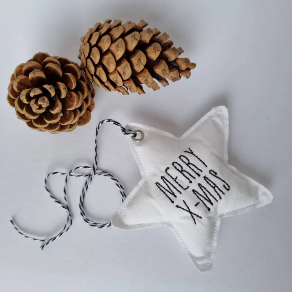 Der Deko-Stern ist mit einer Stickmaschine erstellt (ITH), mit Füllwatte ausgestopft und im Anschluss einfach ausgeschnitten worden. Deshalb kann er im Laufe der Zeit etwas ausfransen, was den Vintage-Charakter noch weiter unterstreicht und keinen Mangel darstellt. Ein gewollter Patina-Look entsteht.