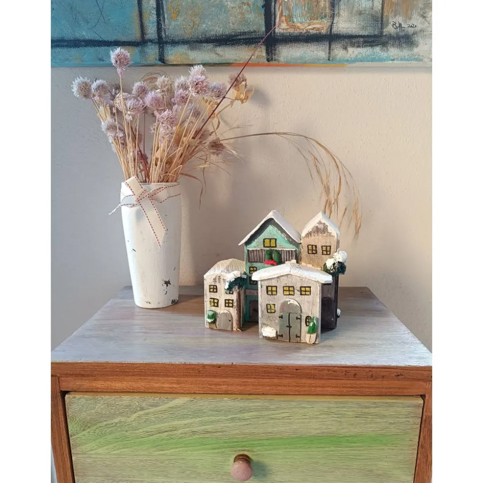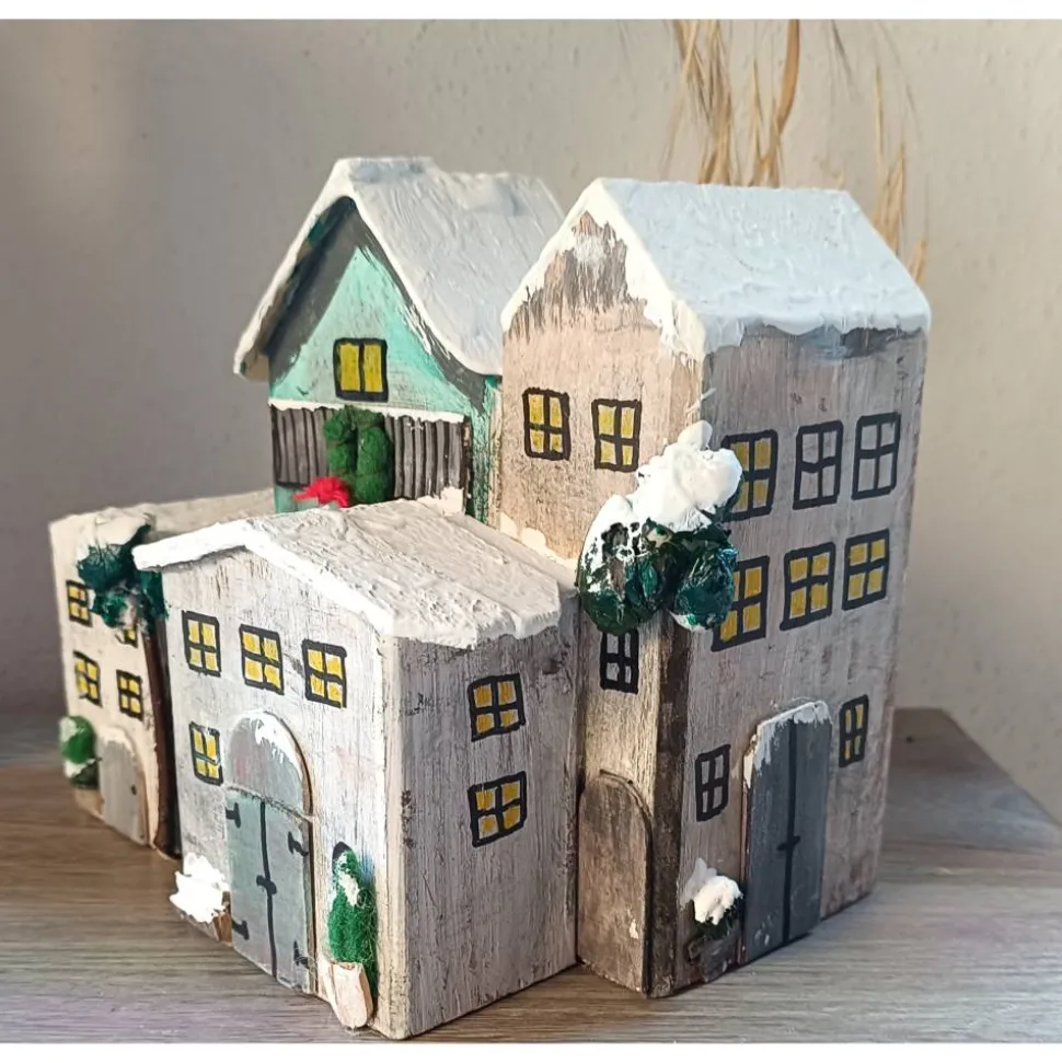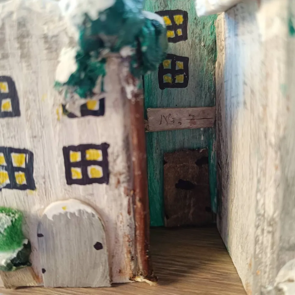bemalt und mit Schnee aus weißer Kalkfarbe versehen!