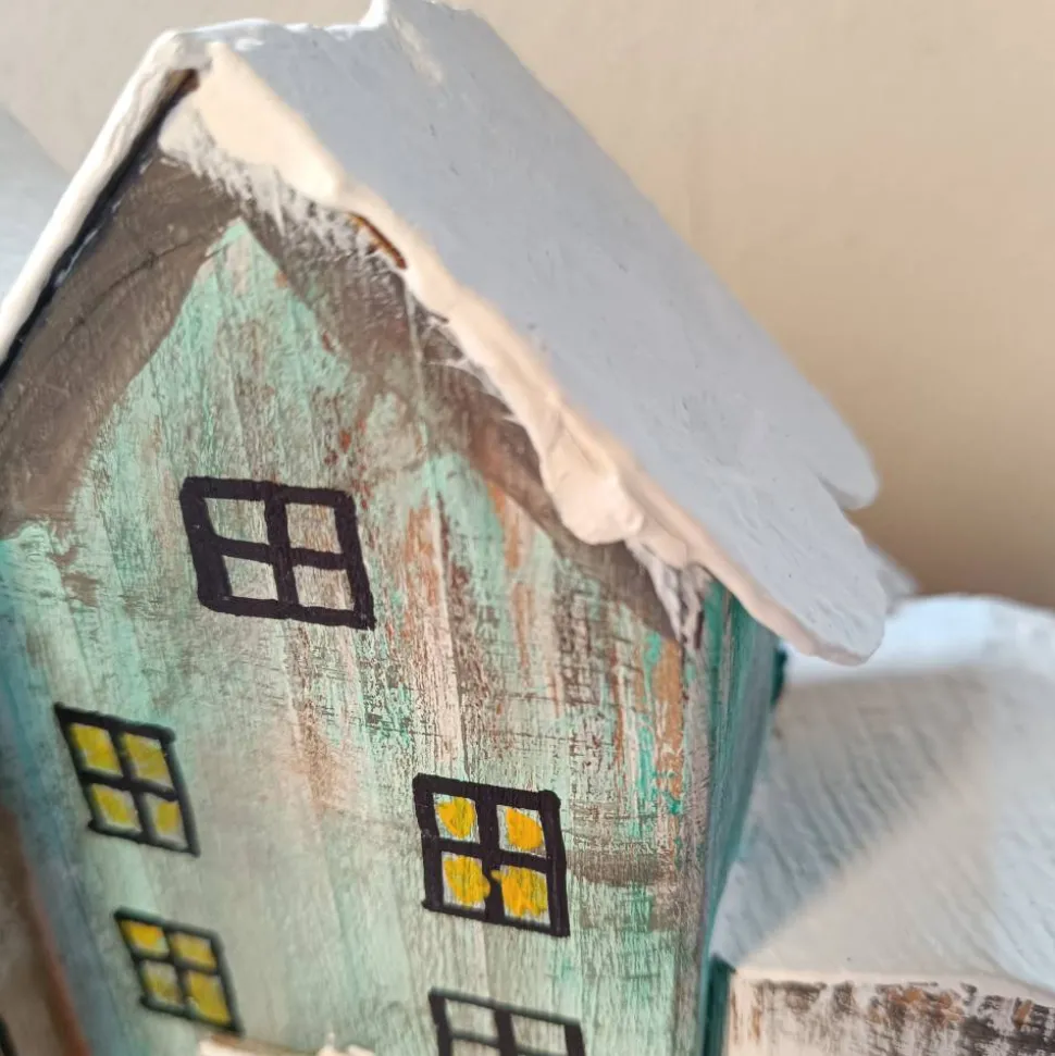Die Häuschen sind zusammengeleimt, bzw. in einem Stück !