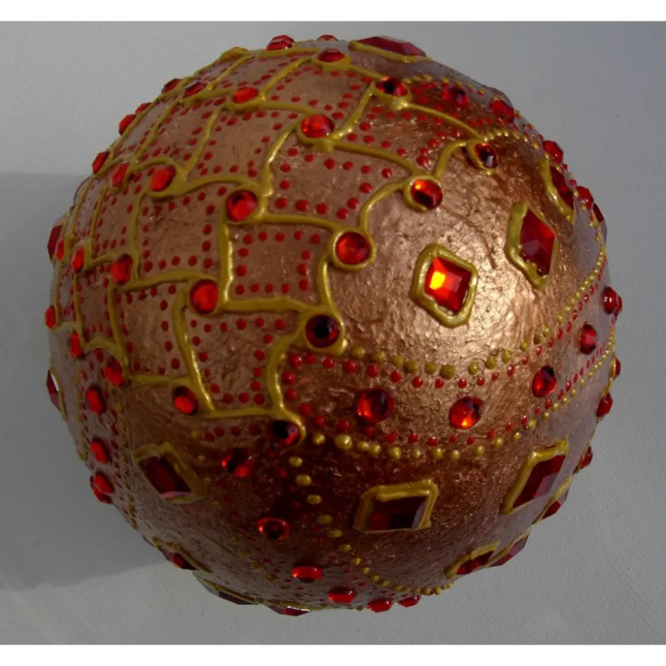 Verwendete Materialien: Acrylfarben auf einem Keramik-Ei, gestaltet mit Glitzersteinen.