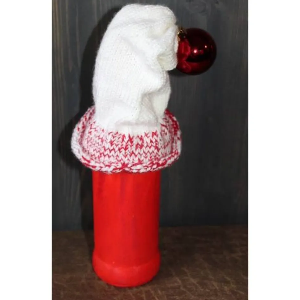 Weihnachtswichtel aus einer Glasflasche. Witziges Upcycling-Projekt, gestaltet mit Acrylfarbe, einem Näschen aus Kork und einem handgestrickten Wollmützchen. Verziert mit viel Glitter und Glitzersteinchen. Lustige Dekofigur für die Herbst- und Weihnachtszeit. Kann auch als Geldgeschenk verwendet werden indem man mit einer Klammer einen Geldschein an der Mütze festklemmt.