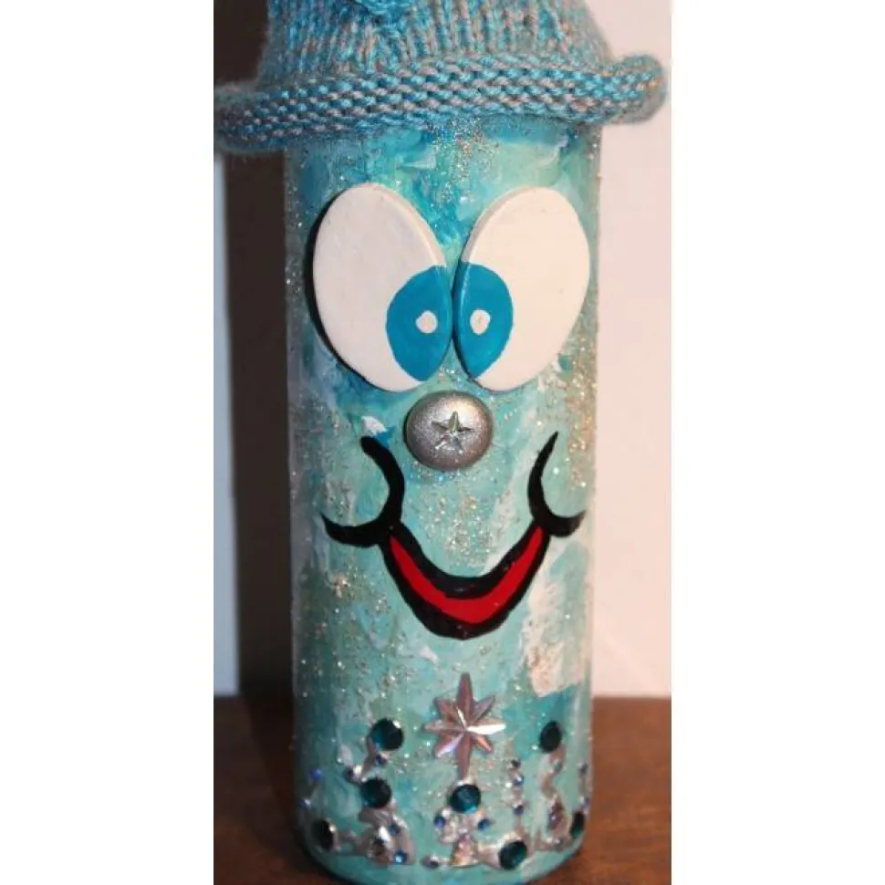 Weihnachtswichtel aus einer Weintflasche. Witziges Upcycling-Projekt, gestaltet mit Acrylfarbe und einem handgestrickten Wollmützchen. Verziert mit Perlen, Glitter und Glitzersteinen. Lustige Dekofigur für die Herbst- und Weihnachtszeit. Kann auch als Geldgeschenk verwendet werden indem man einen Geldschein oder Gutschein mit einer Klammer an das Mützchen klemmt.