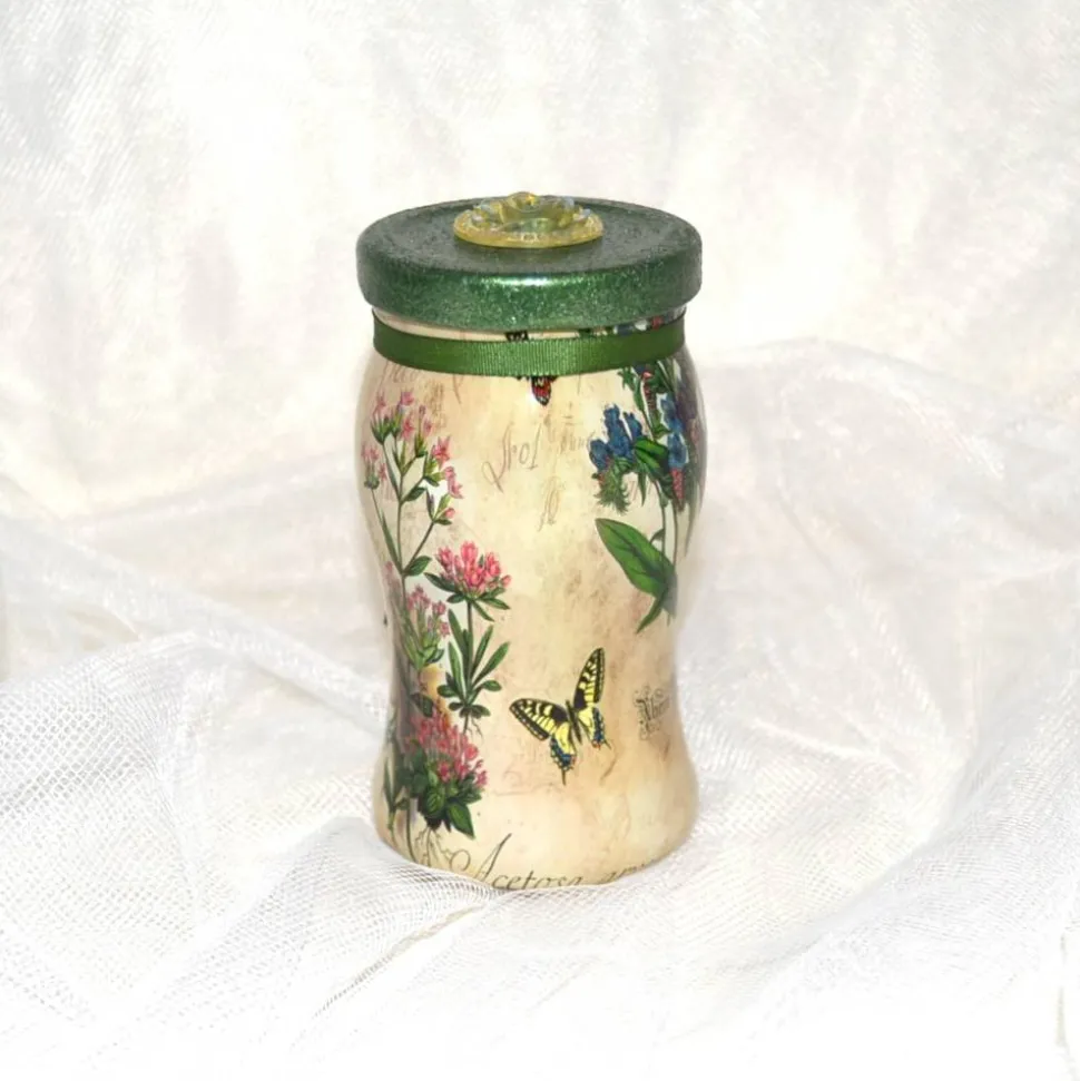 Dieses schöne Glas wurde in Handarbeit mit einer Banderole mit romantischem Blumenmotiv, Papierblume und einer Rose aus Resin auf dem Deckel verziert. Mit kleinen Süßigkeiten, Geld oder Gutschein gefüllt ist es eine schöne Verpackung, das sich anschließend wunderbar als Deko-Objekt eignet. Mit einem LED Teelicht im Glas erhalten Sie eine romantische Stimmung am Abend. Eine Verpackung die nicht gleich den Inhalt erahnen lässt. Dieses romantische Dekoglas kann auch weiter verschenkt werden.
